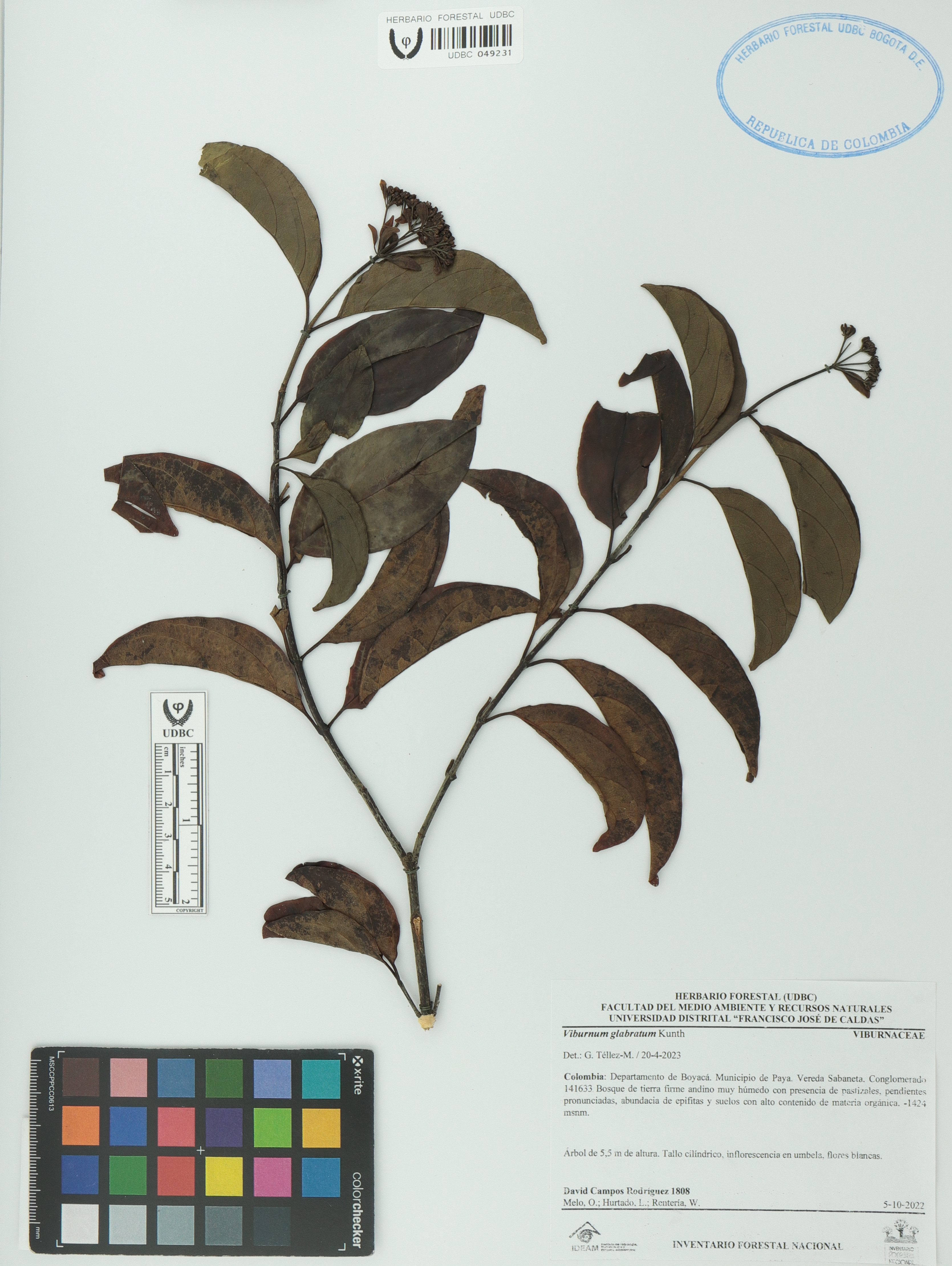Fotografía del ejemplar Campos-Rodríguez, D. 1808, determinado como Viburnum glabratum en el año 2023