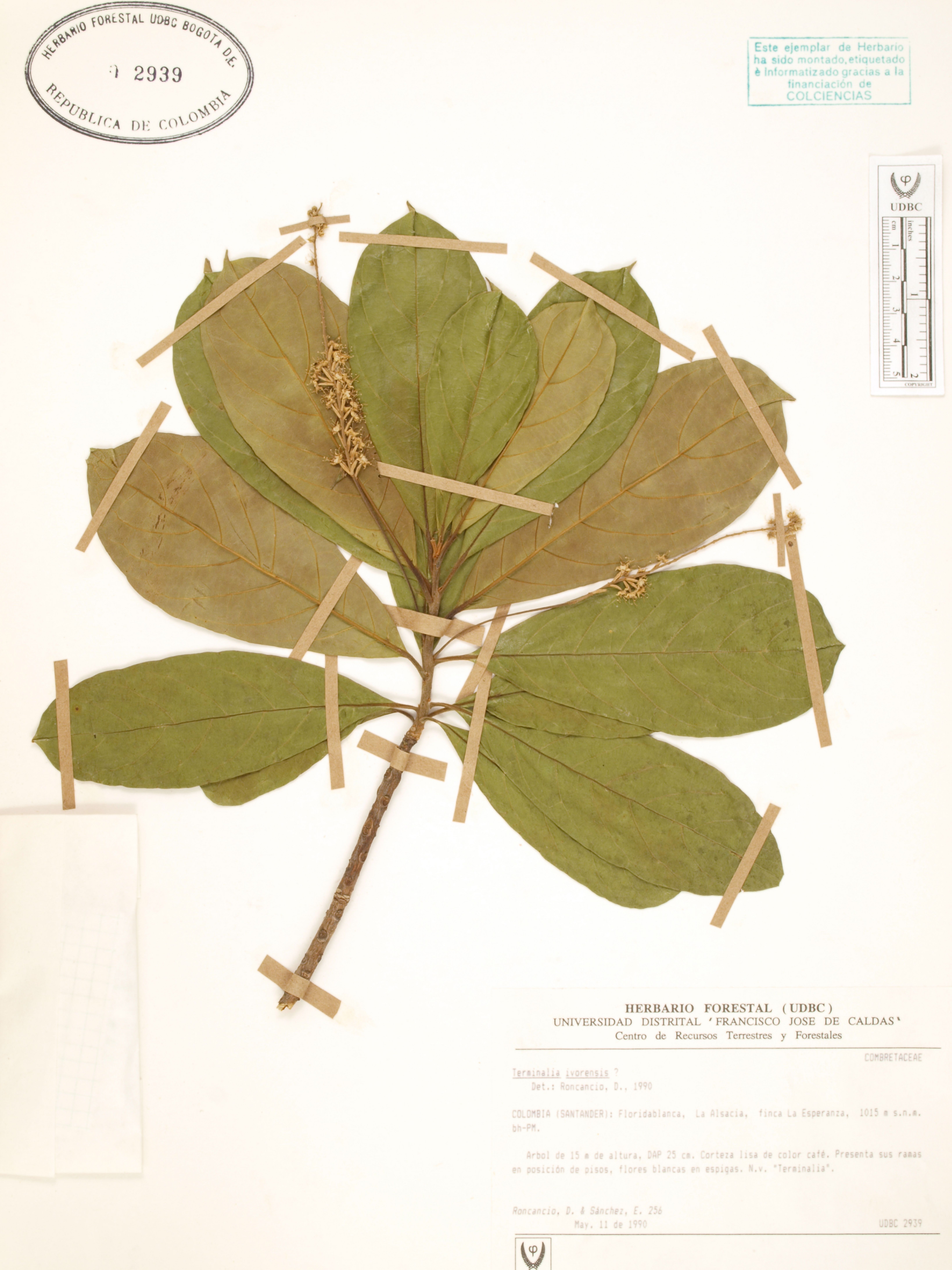 Fotografía del ejemplar Roncancio, D. 256, determinado como Terminalia ivorensis en el año 1990