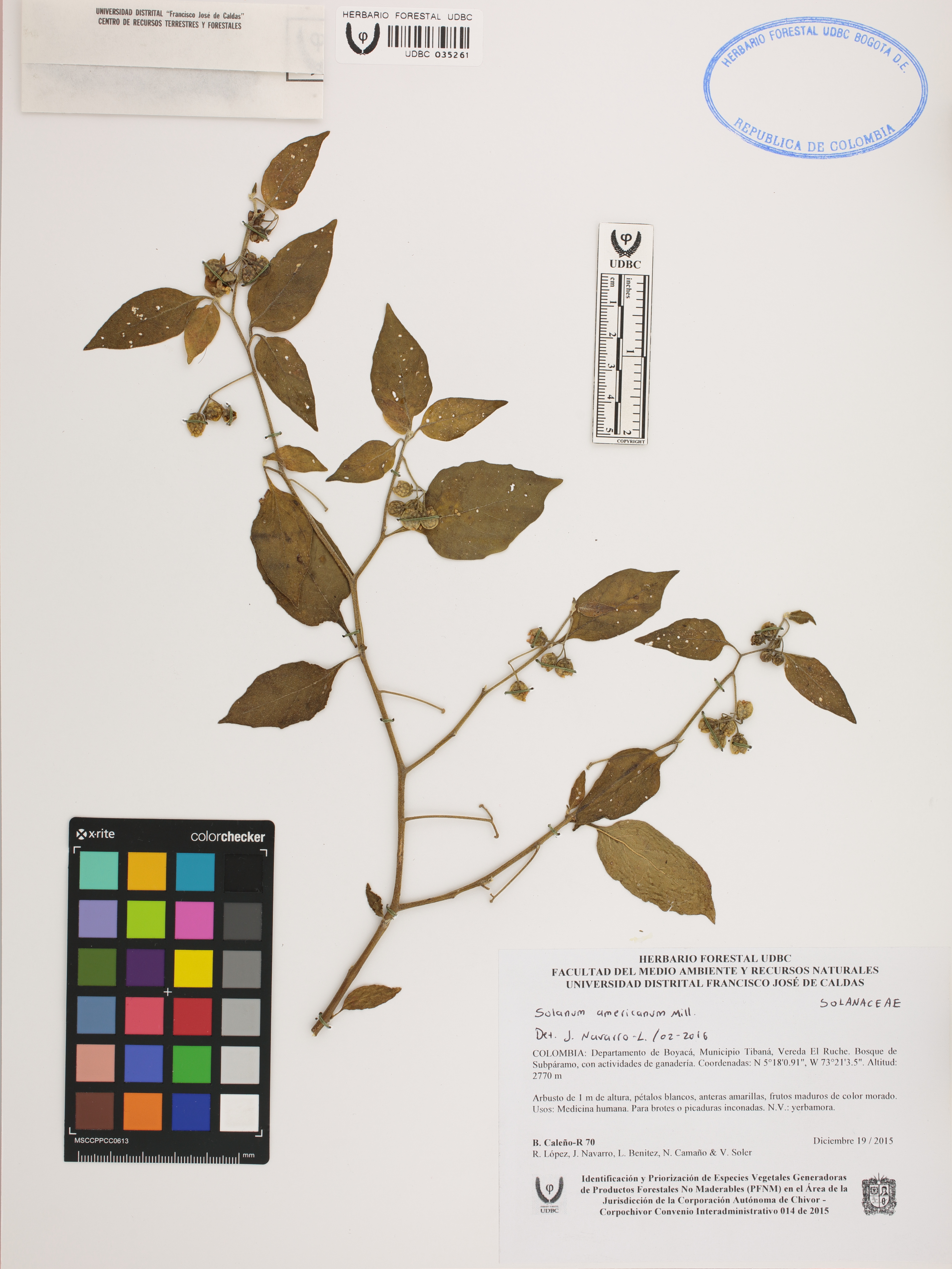 | dc.description | Fotografía del ejemplar Caleño-R., B. 70, determinado como Solanum americanum en el año 2016 | |