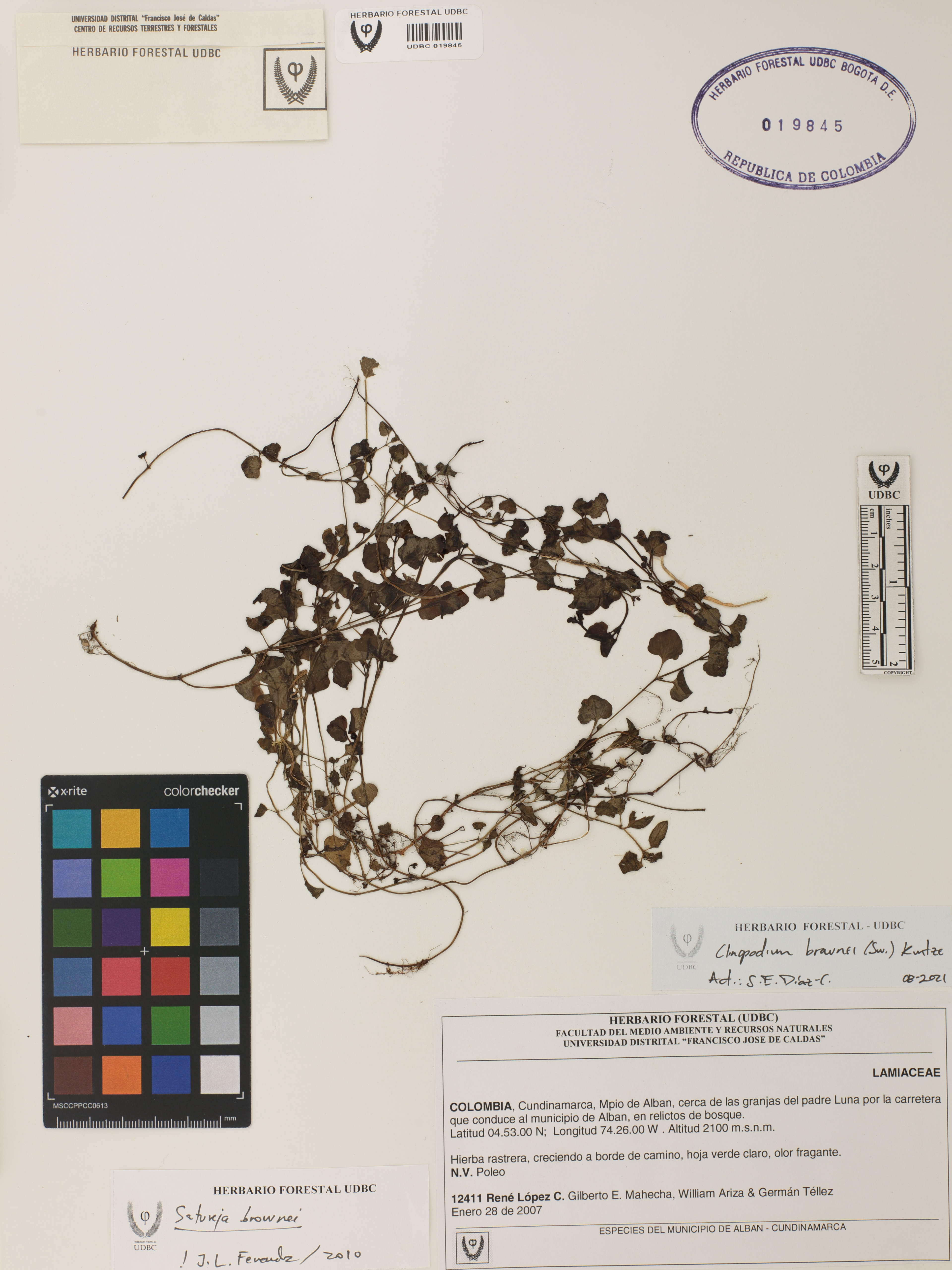 Fotografía del ejemplar López, R. 12411, determinado como Clinopodium brownei en el año 2010