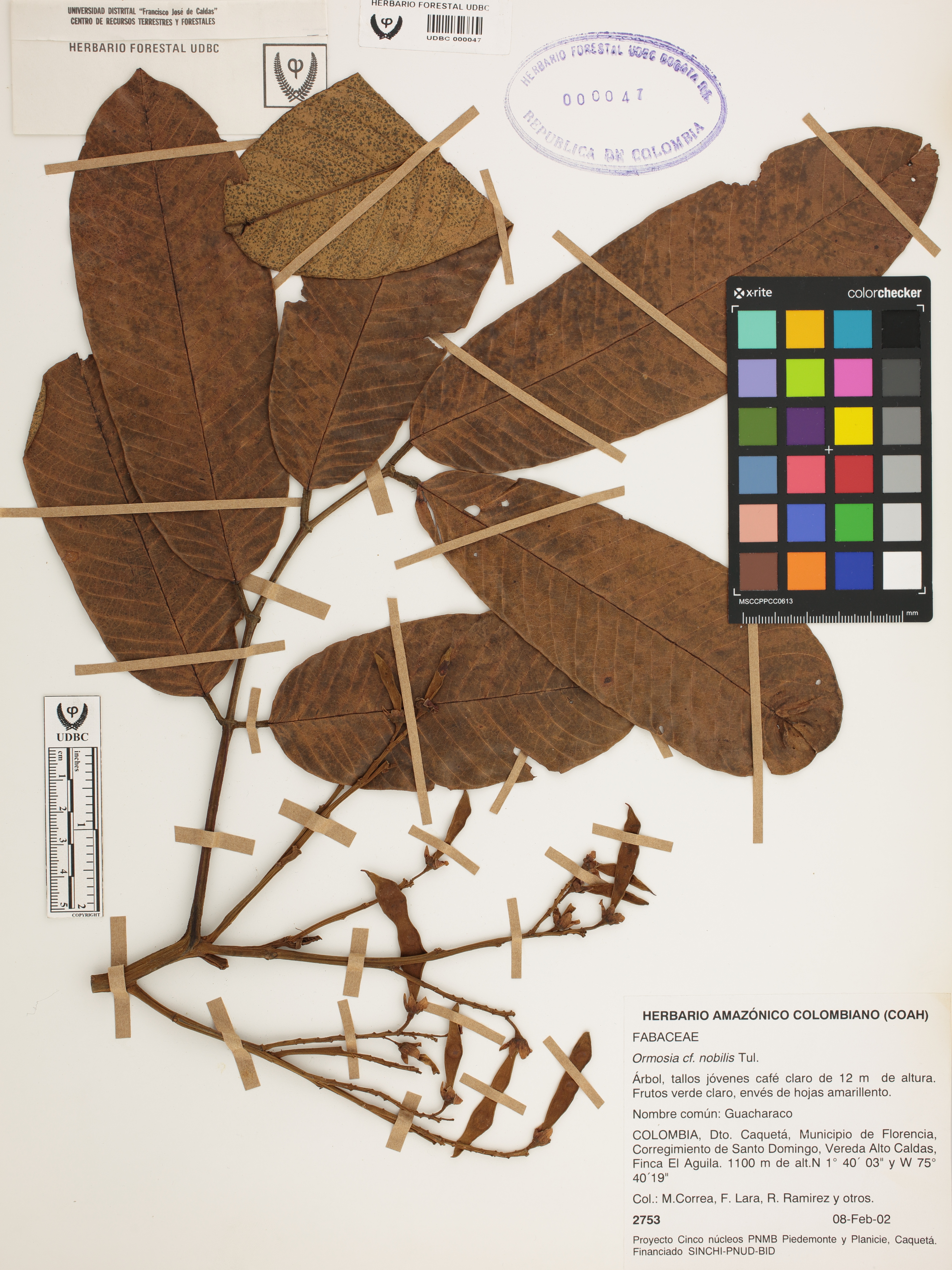 Fotografía del ejemplar Correa, M. 2753, determinado como Ormosia nobilis