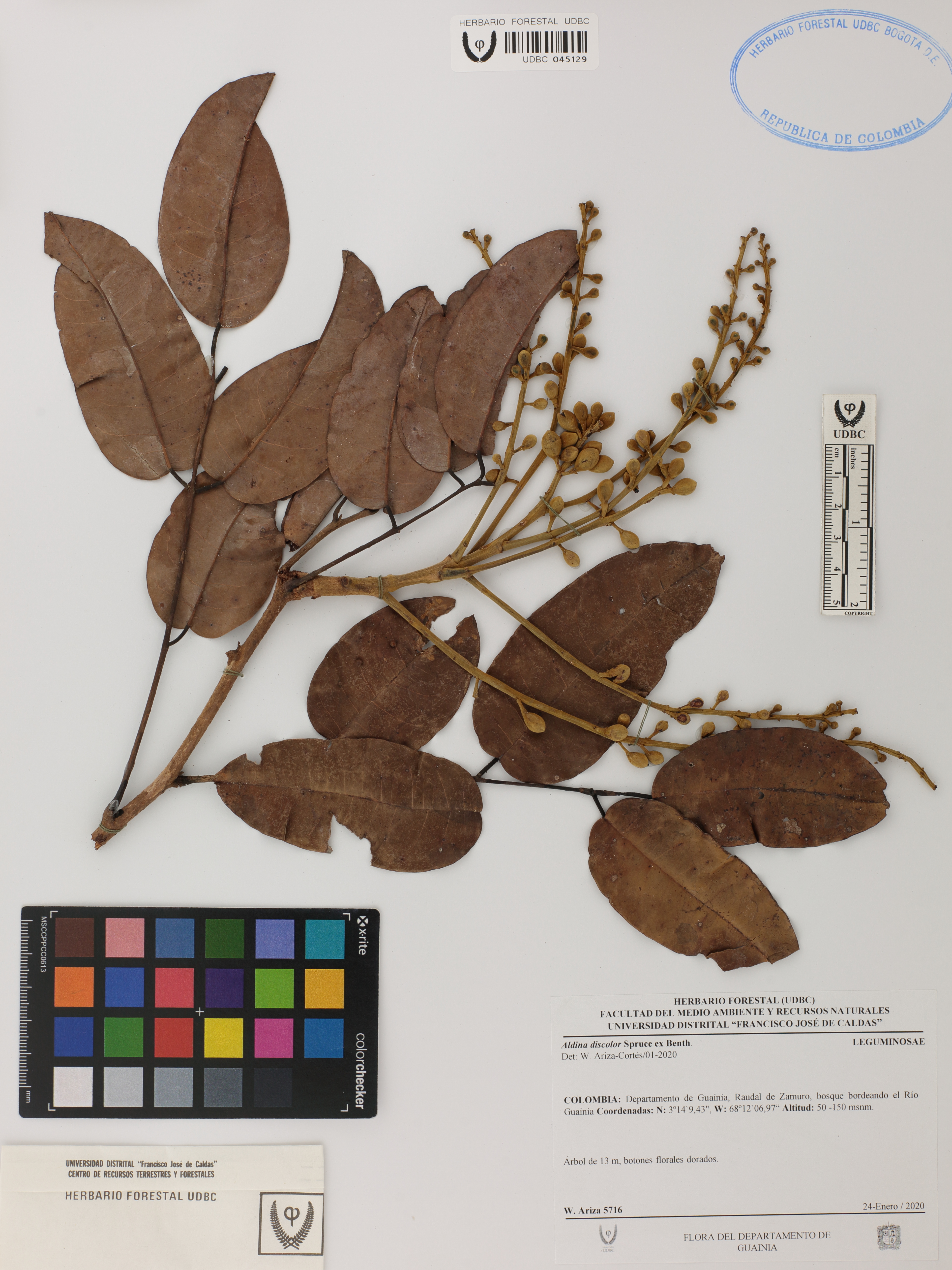 | dc.description | Fotografía del ejemplar Ariza-Cortés, W. 5716, determinado como Aldina discolor en el año 2020 | |