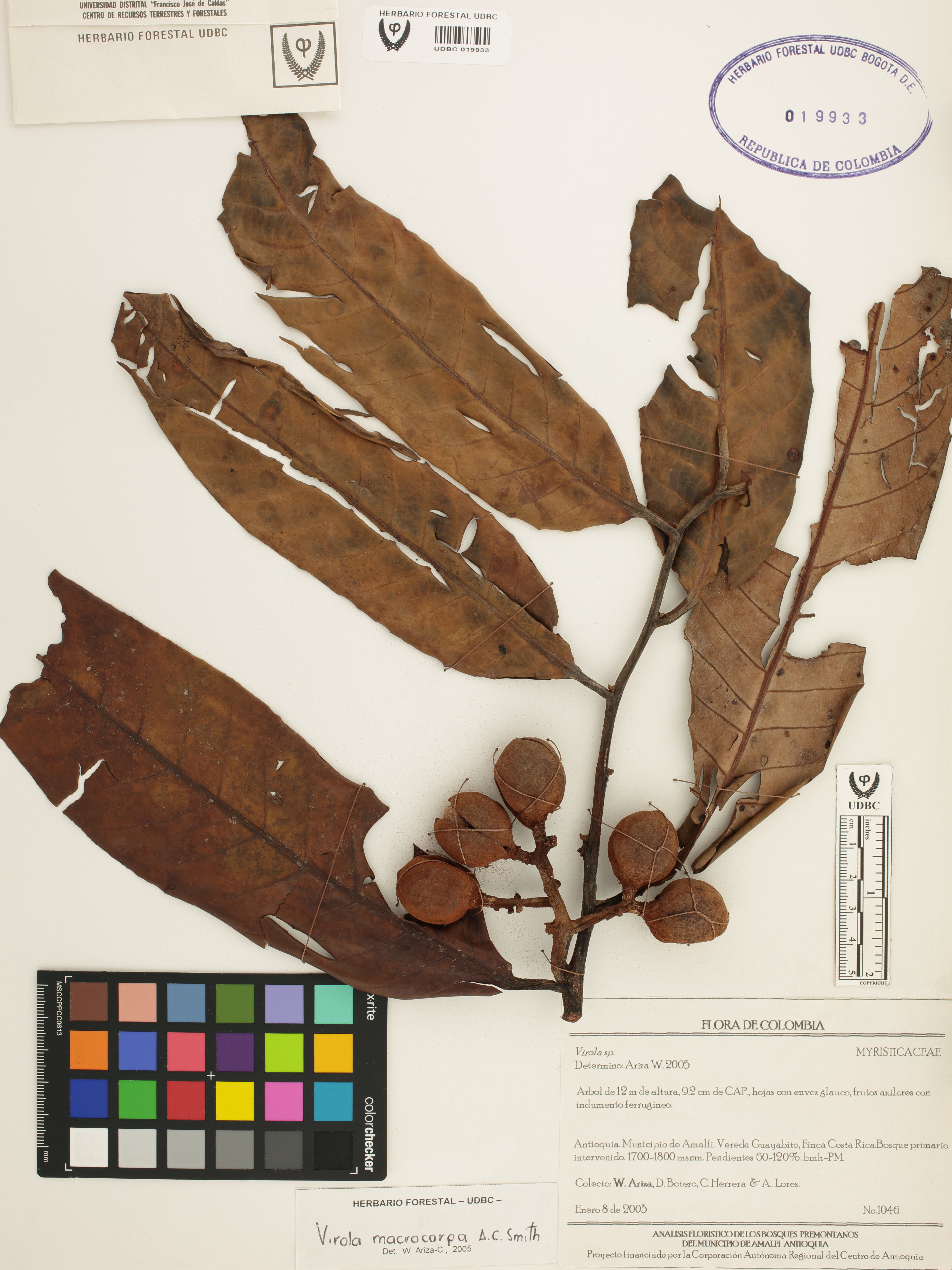 Fotografía del ejemplar Ariza, W. 1046, determinado como Virola macrocarpa en el año 2005
