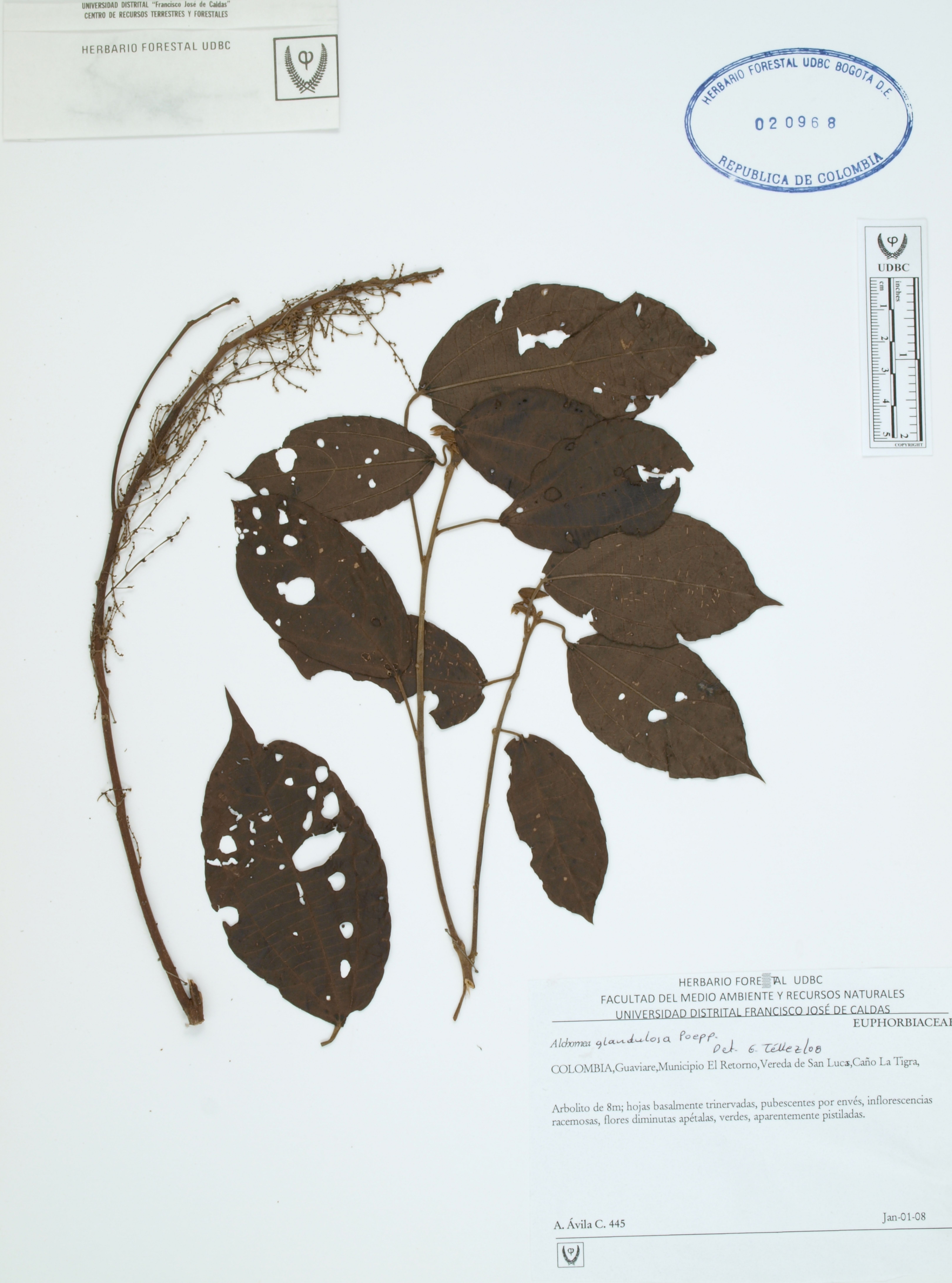 | dc.description | Fotografía del ejemplar Ávila, F. 445, determinado como Alchornea glandulosa en el año 2008 | |