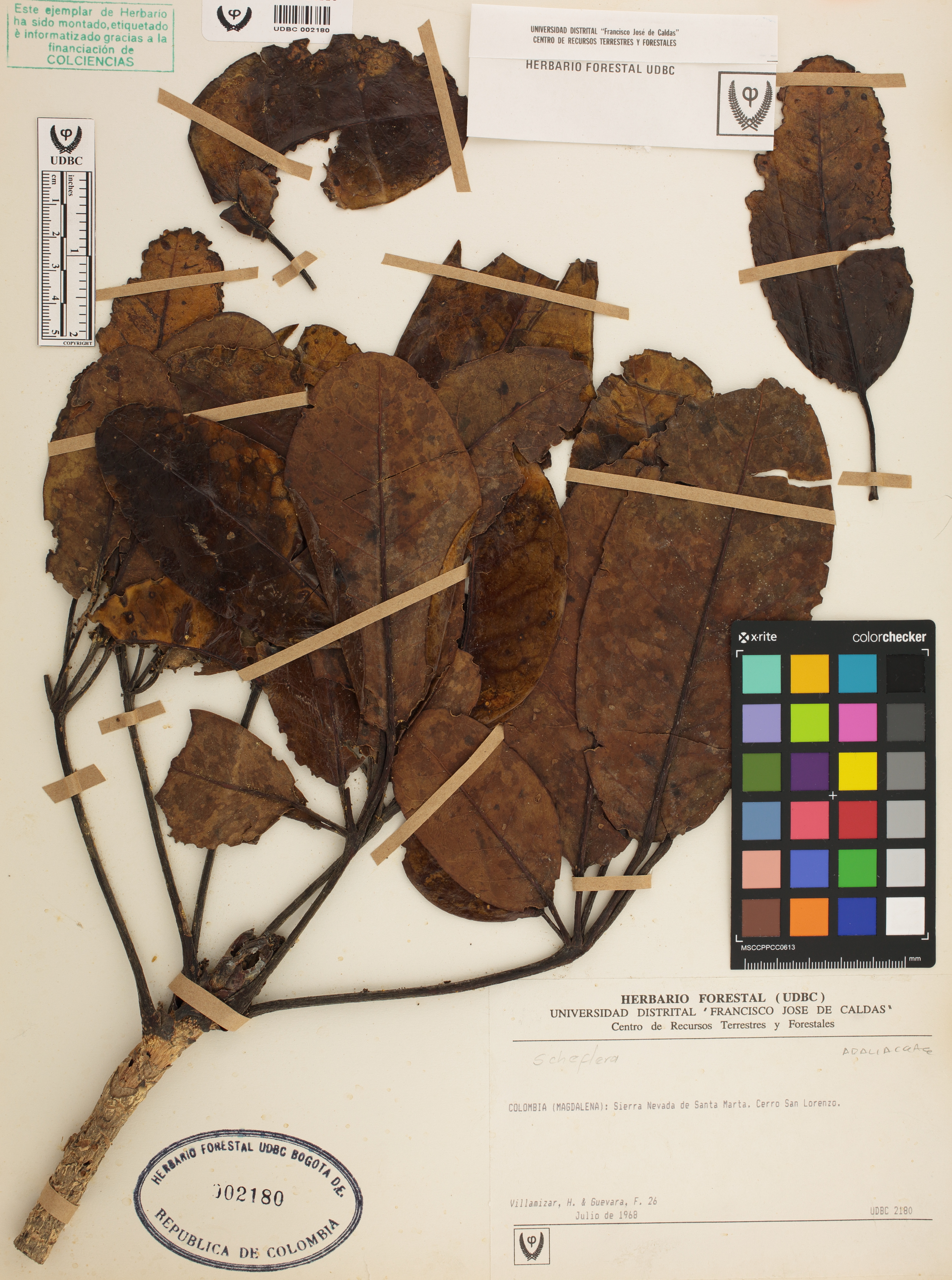 | dc.description | Fotografía del ejemplar Villamizar, H. 26, determinado como Sciodaphyllum sp. en el año 2020 | |