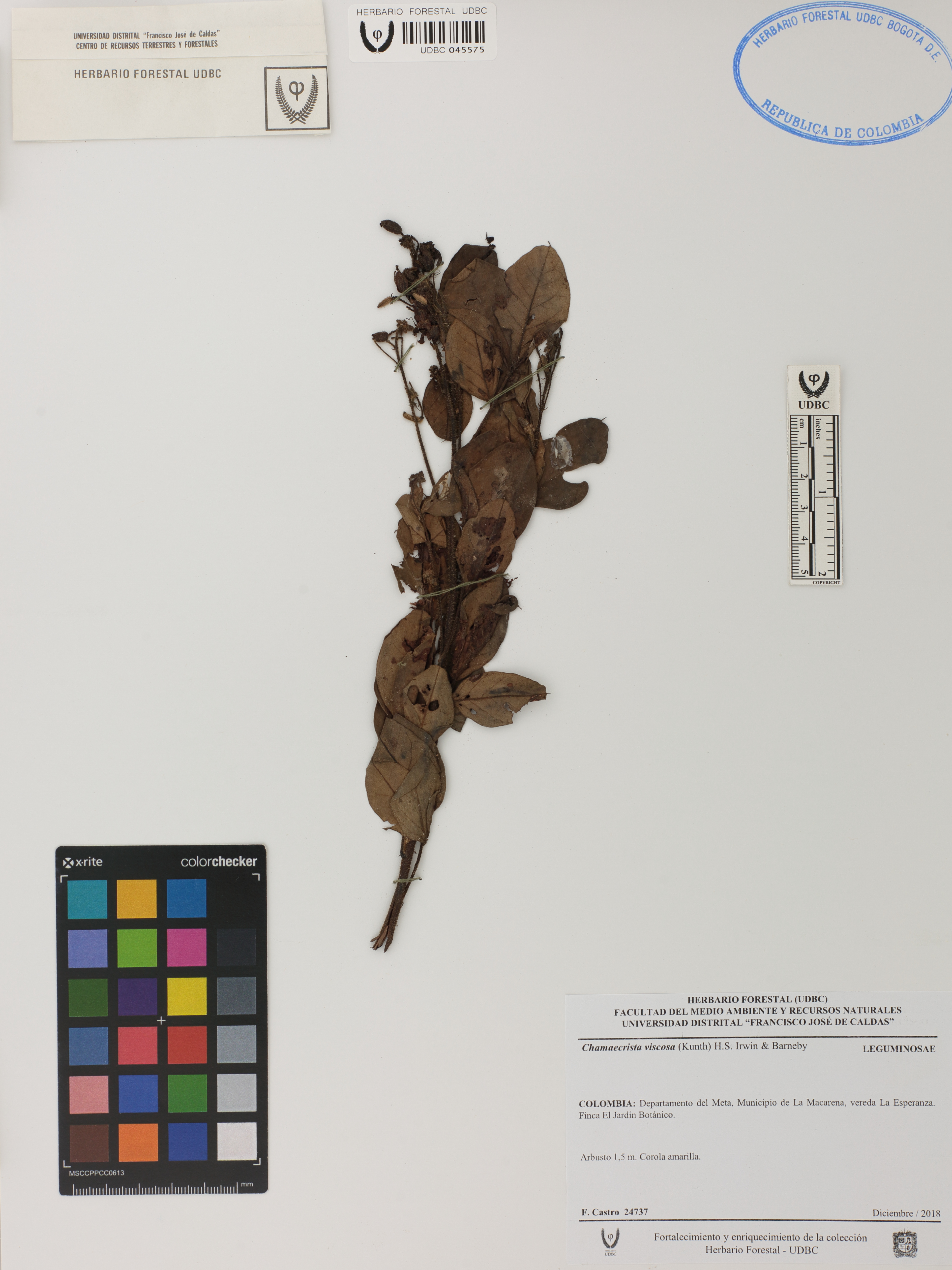 Fotografía del ejemplar Castro, F. 24737, determinado como Chamaecrista viscosa en el año 2018