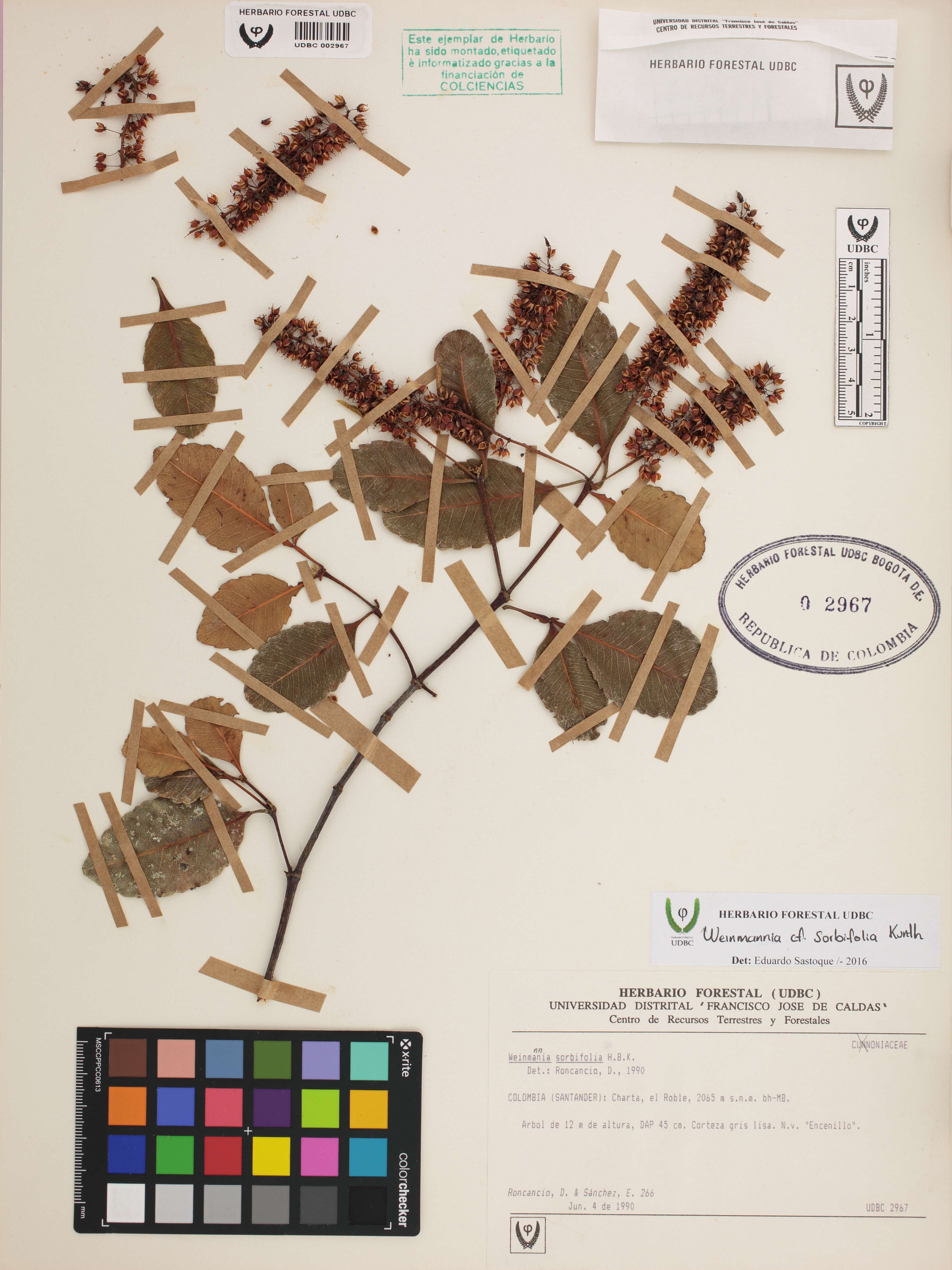 | dc.description | Fotografía del ejemplar Roncancio, D. 266, determinado como Weinmannia sorbifolia en el año 2016 | |