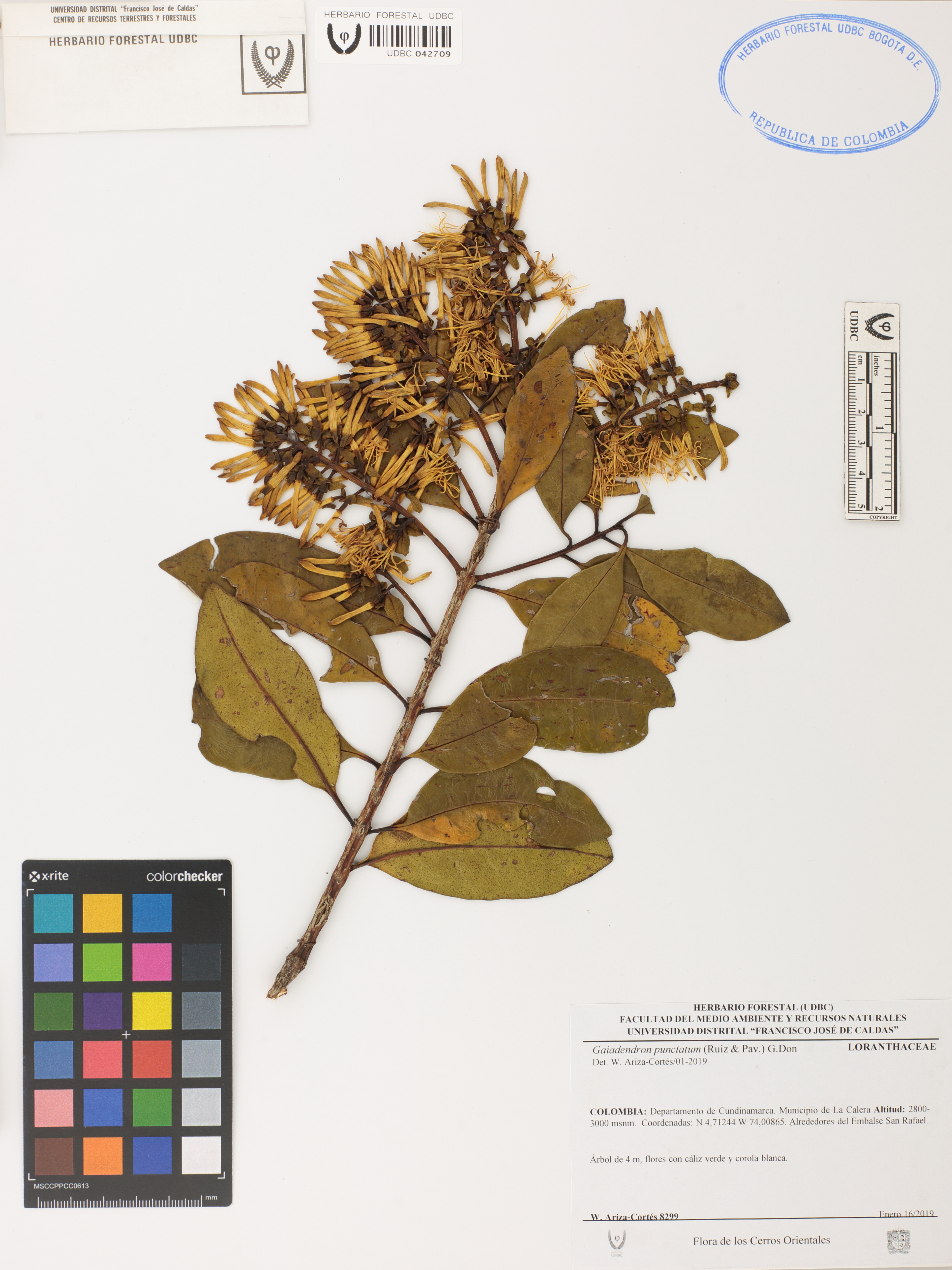 Fotografía del ejemplar Ariza-C., W. 8299, determinado como Gaiadendron punctatum en el año 2019