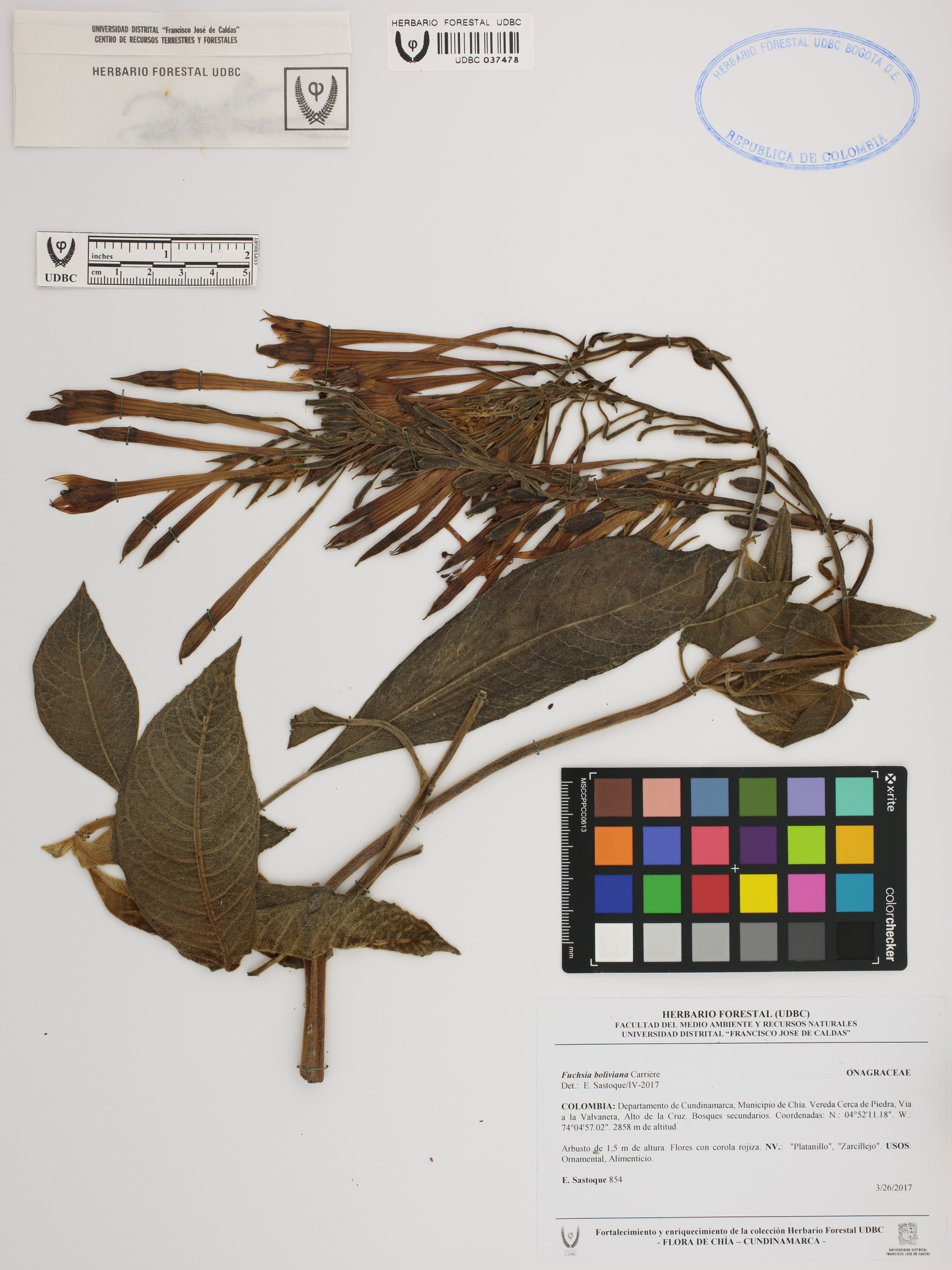 Fotografía del ejemplar Sastoque, E. 854, determinado como Fuchsia boliviana en el año 2017