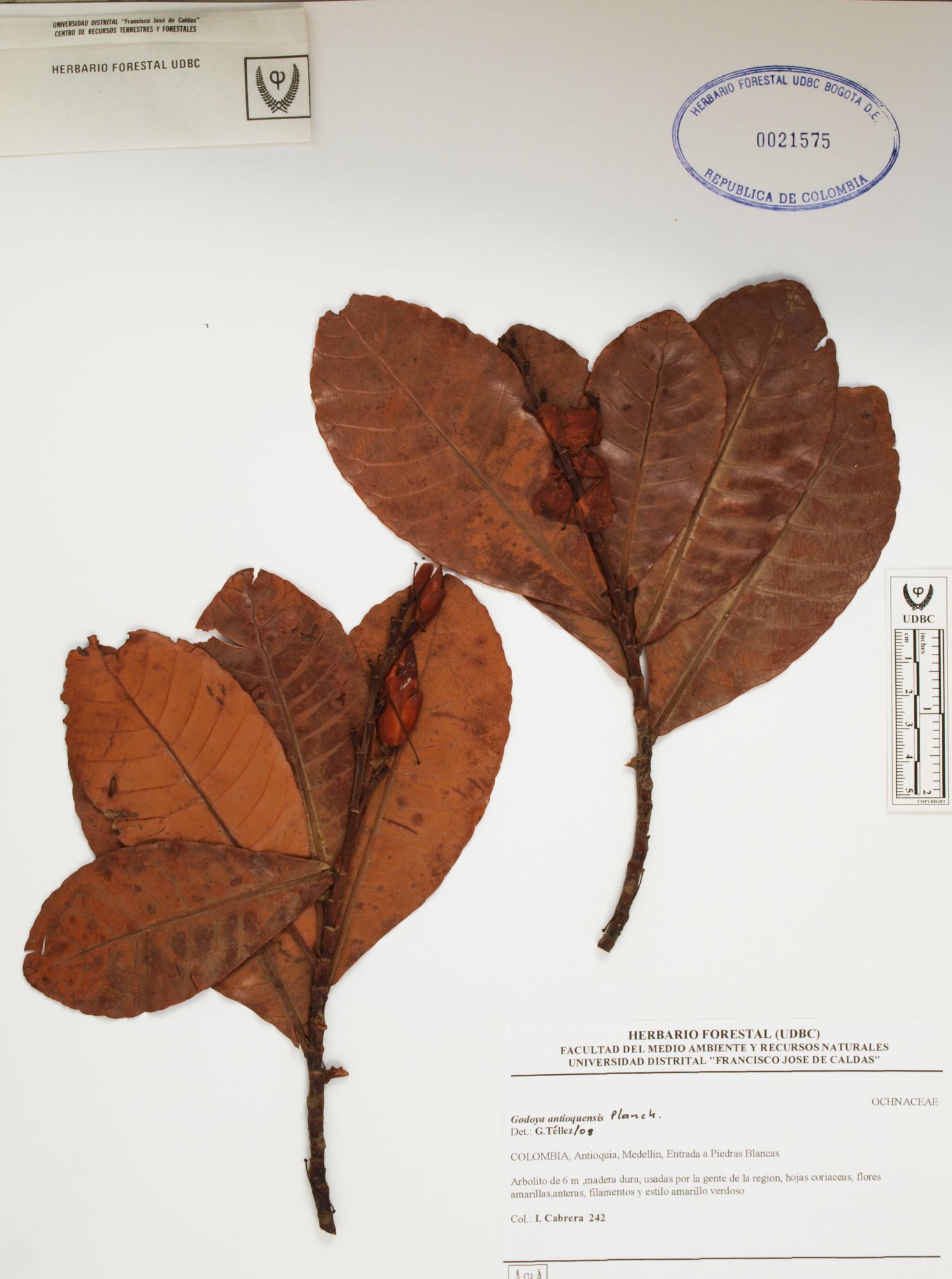 Fotografía del ejemplar Cabrera, I. 242, determinado como Godoya antioquiensis en el año 2008