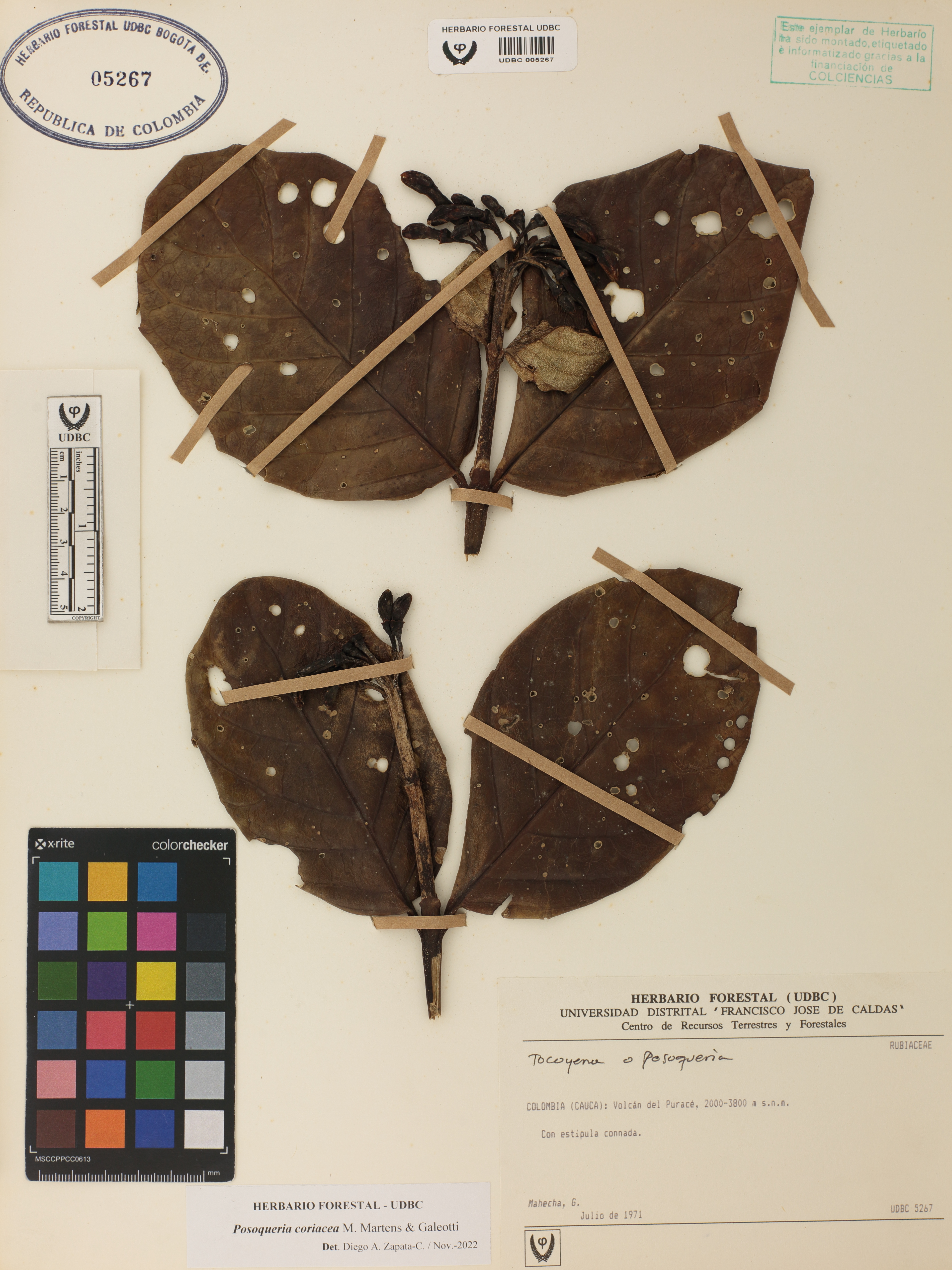 Fotografía del ejemplar Mahecha, G., determinado como Posoqueria coriacea en el año 2022