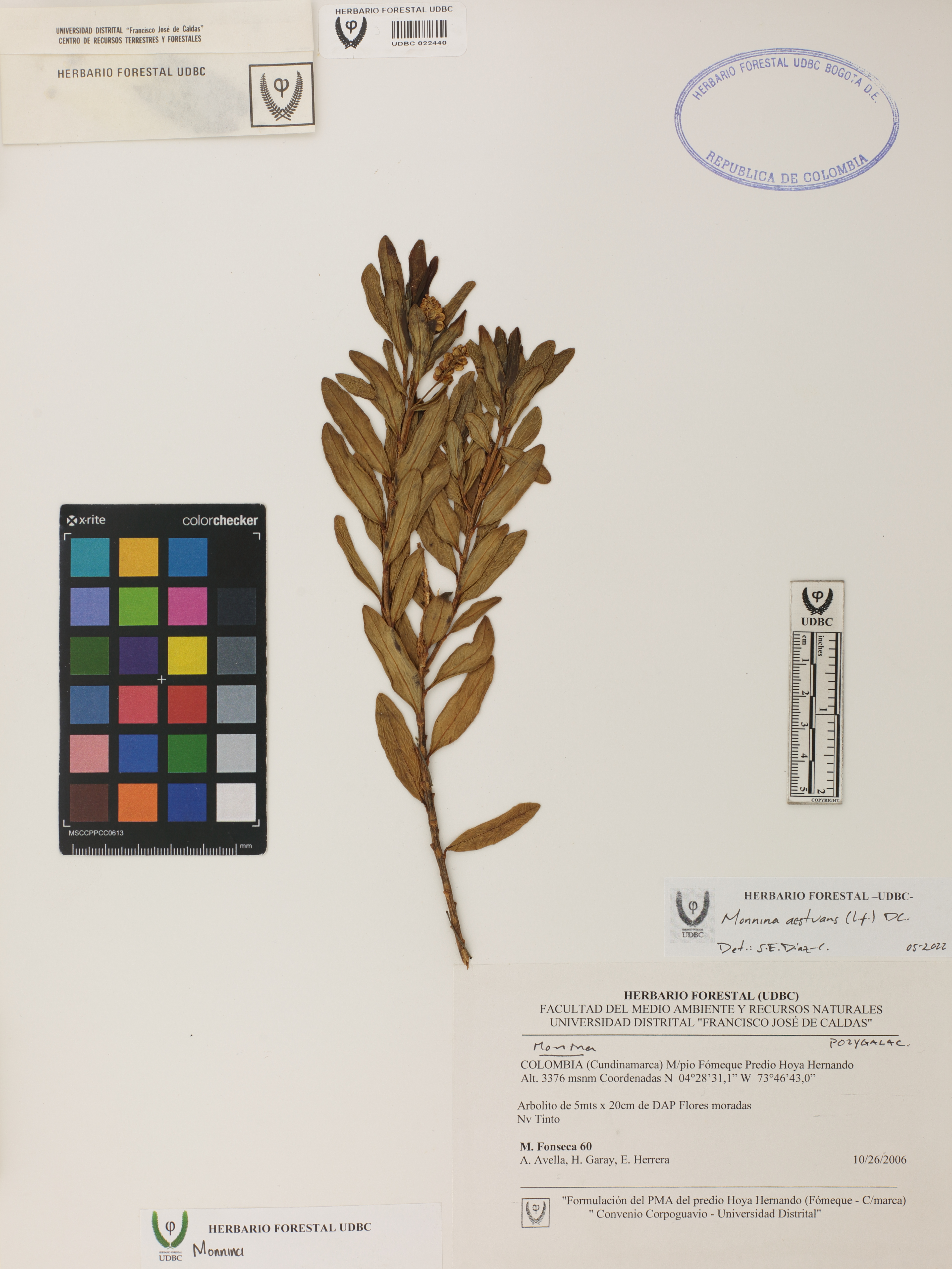 Fotografía del ejemplar Fonseca, M. 60, determinado como Monnina aestuans en el año 2022