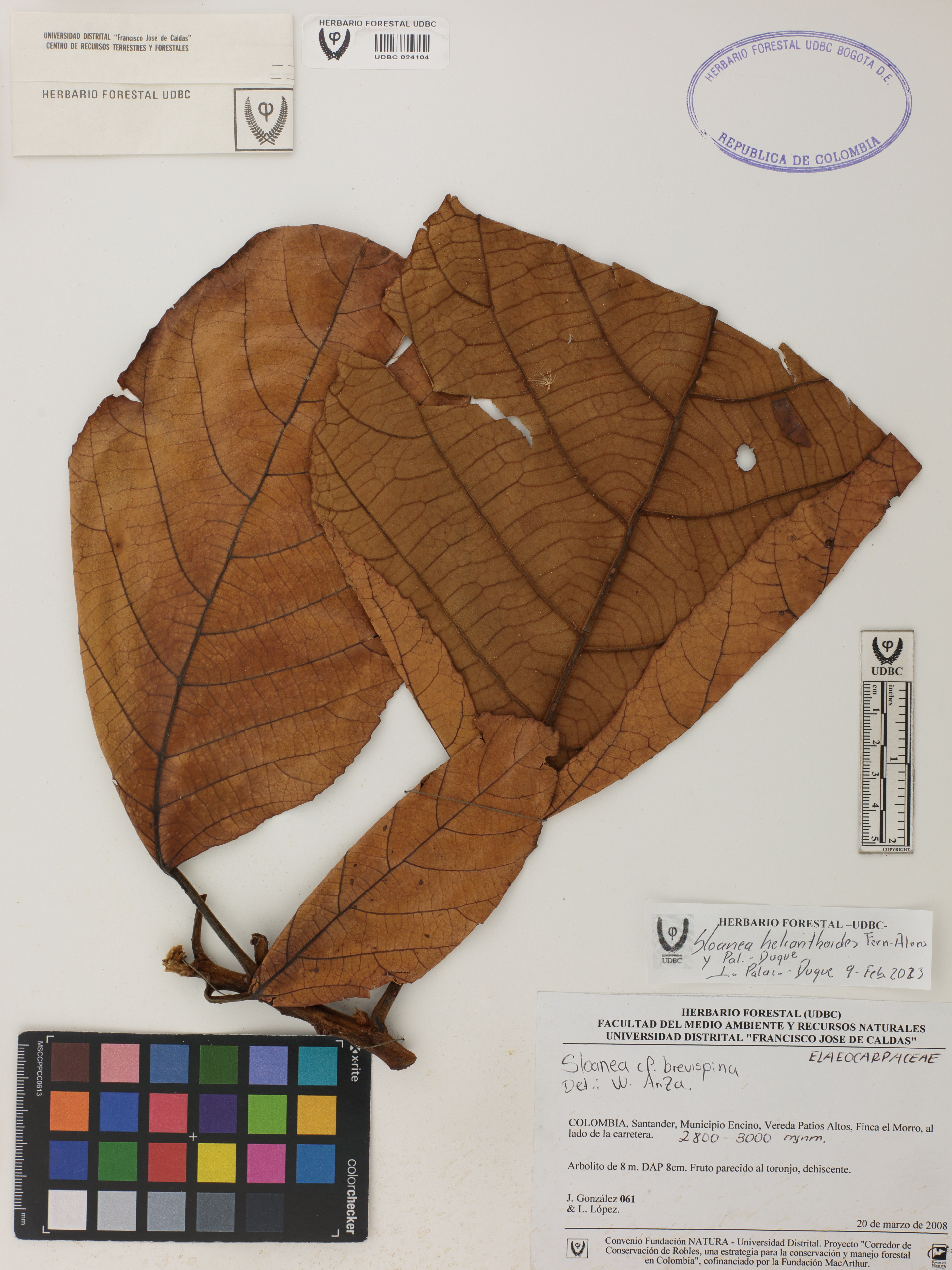 | dc.description | Fotografía del ejemplar González, J. 61, determinado como Sloanea helianthoides en el año 2023 | |