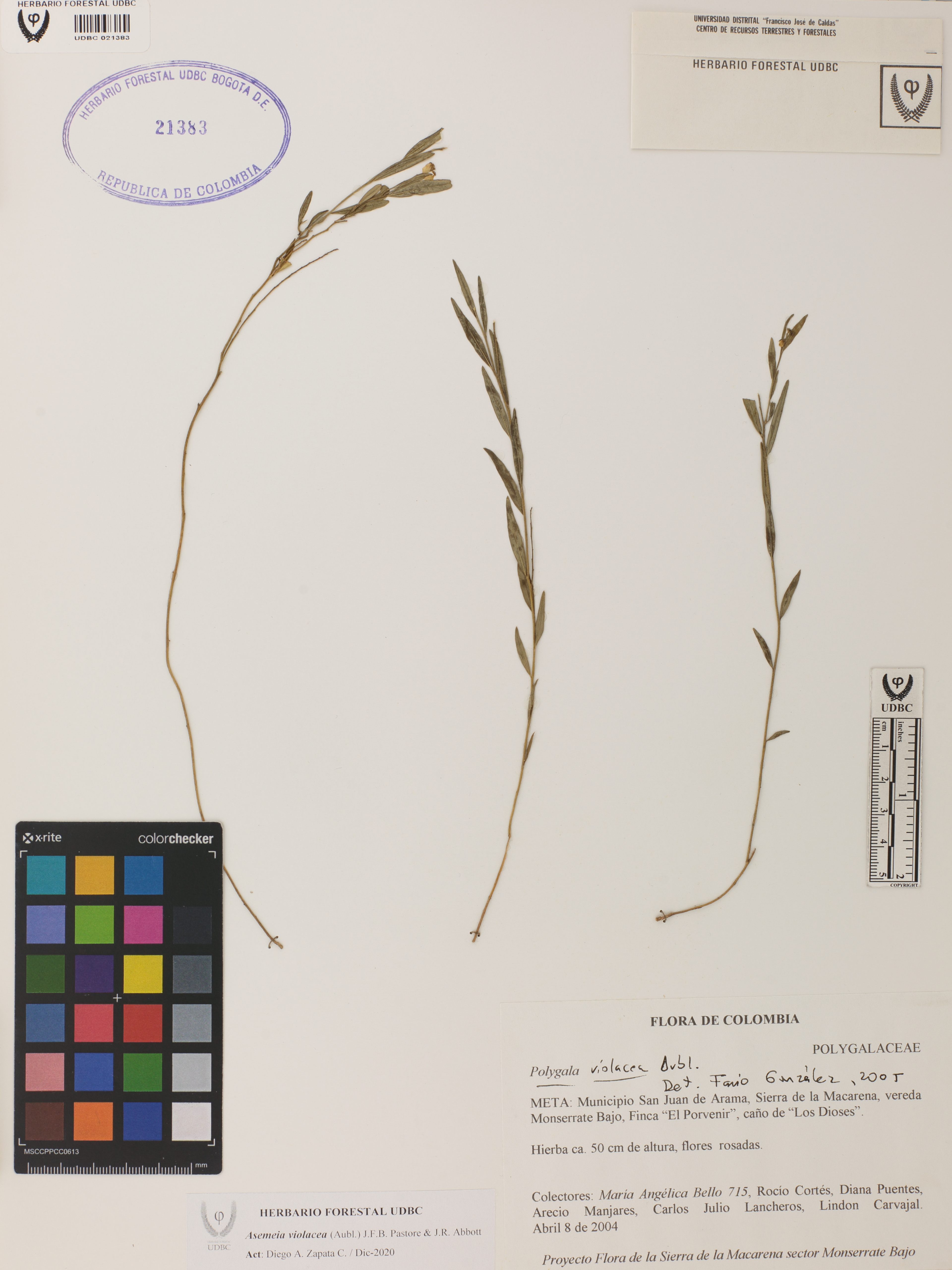 Fotografía del ejemplar Bello, M. 715, determinado como Asemeia violacea en el año 2005