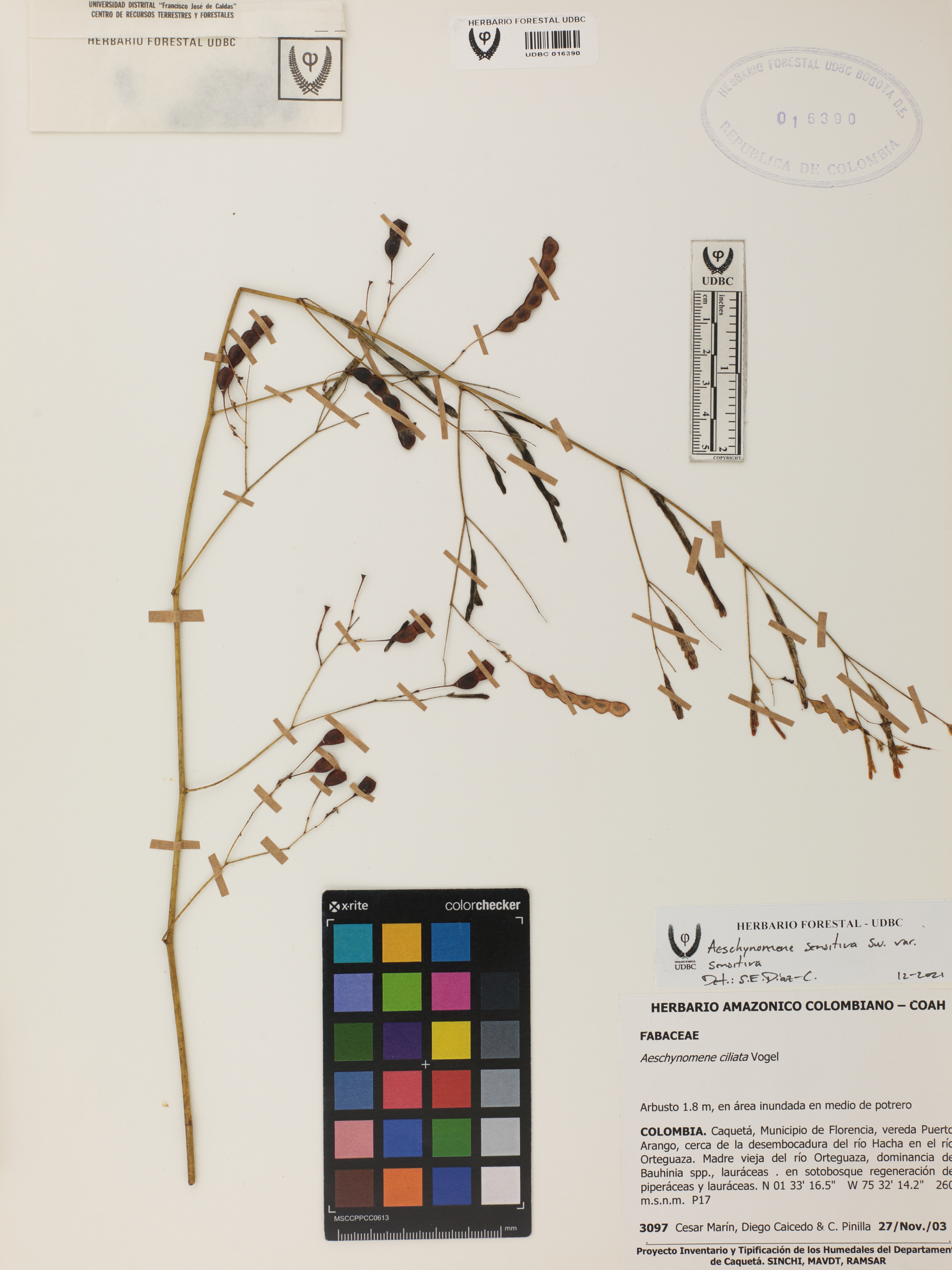 Fotografía del ejemplar Marín, C. 3097, determinado como Aeschynomene sensitiva var. sensitiva en el año 2021