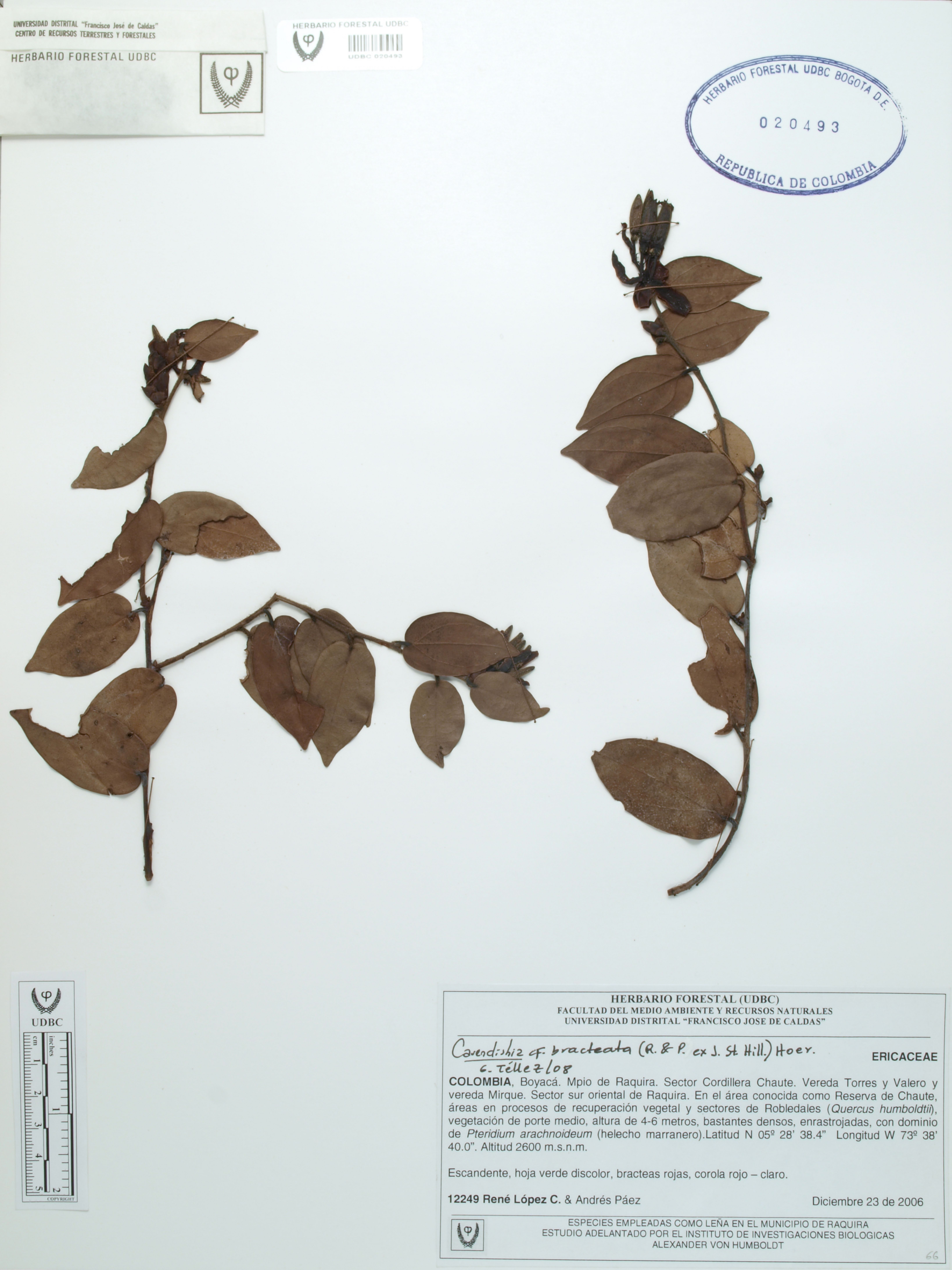 Fotografía del ejemplar López, R. 12249, determinado como Cavendishia bracteata en el año 2008