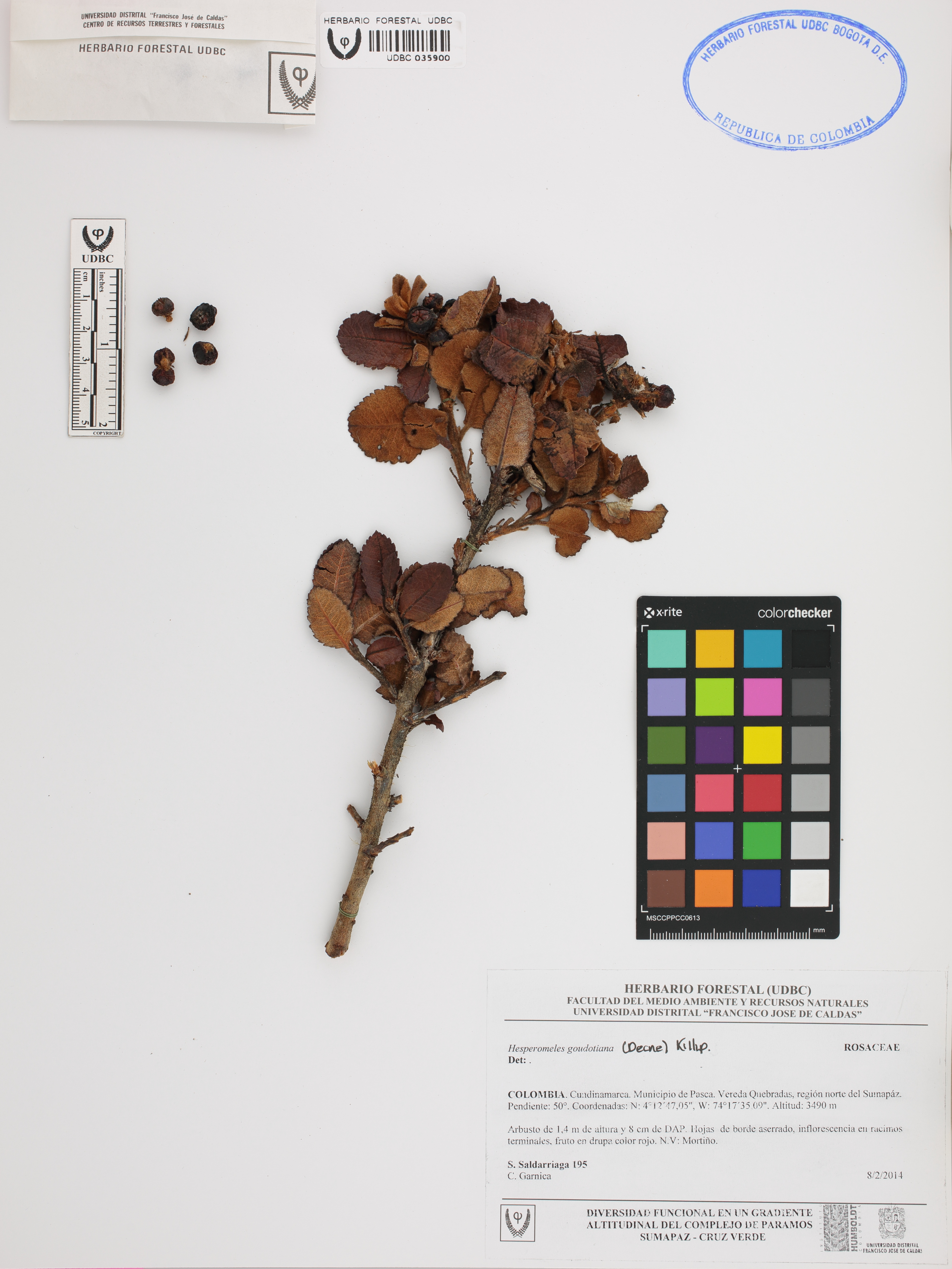 Fotografía del ejemplar Saldarriaga, S. 195, determinado como Hesperomeles goudotiana