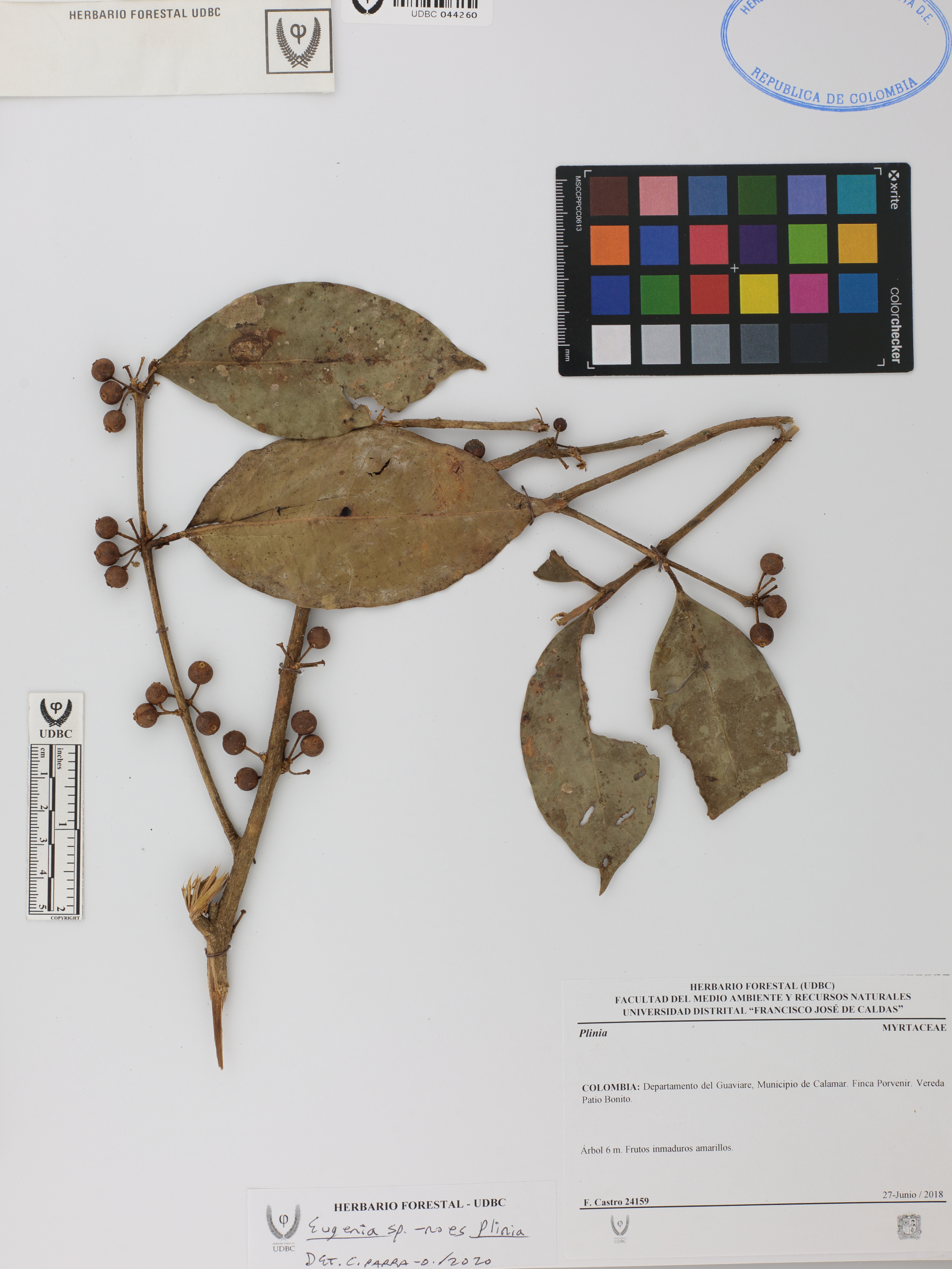 Fotografía del ejemplar Castro, F. 24159, determinado como Eugenia sp. en el año 2020