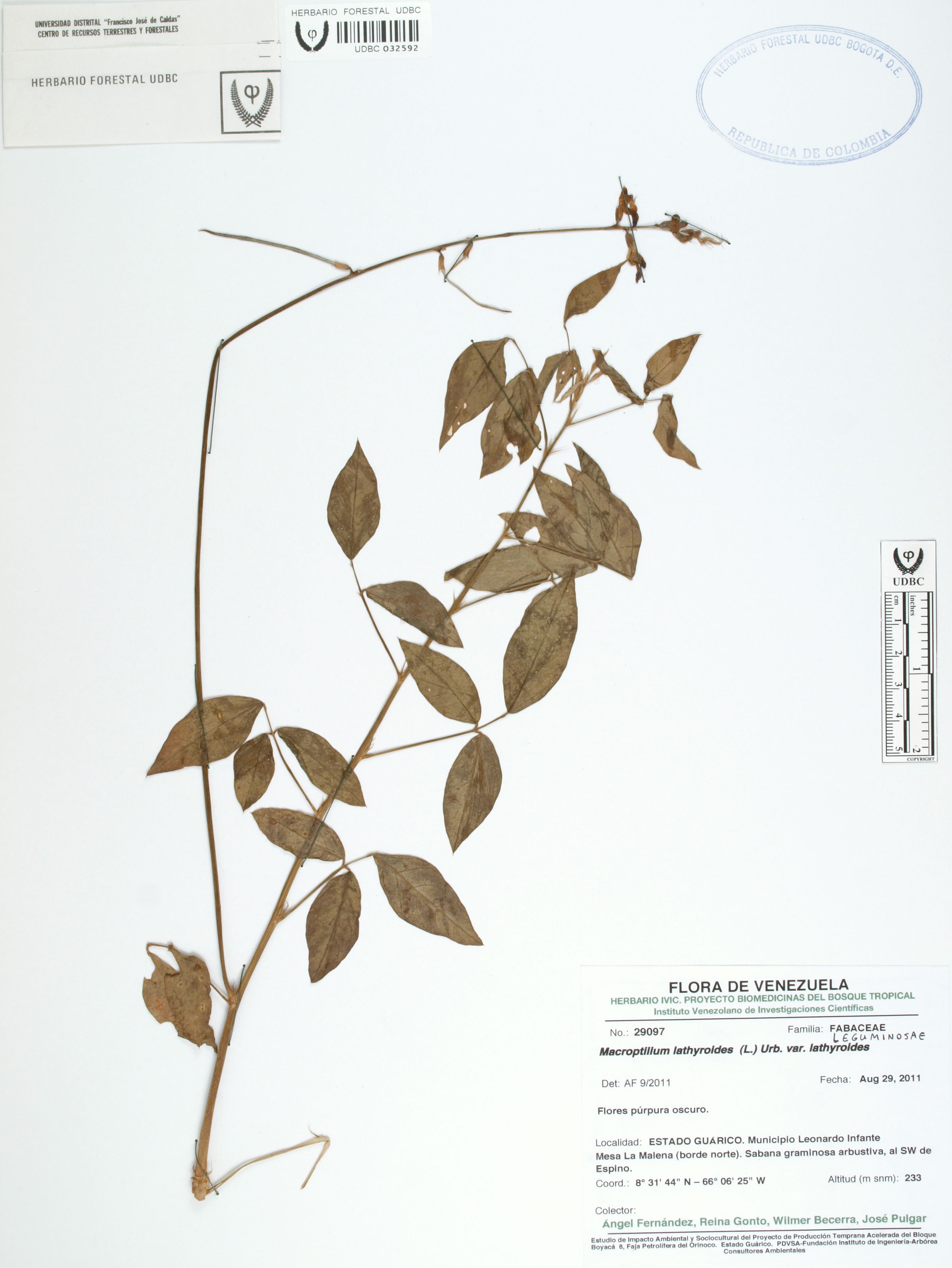 | dc.description | Fotografía del ejemplar Fernández, A. 29097, determinado como Macroptilium lathyroides en el año 2011 | |
