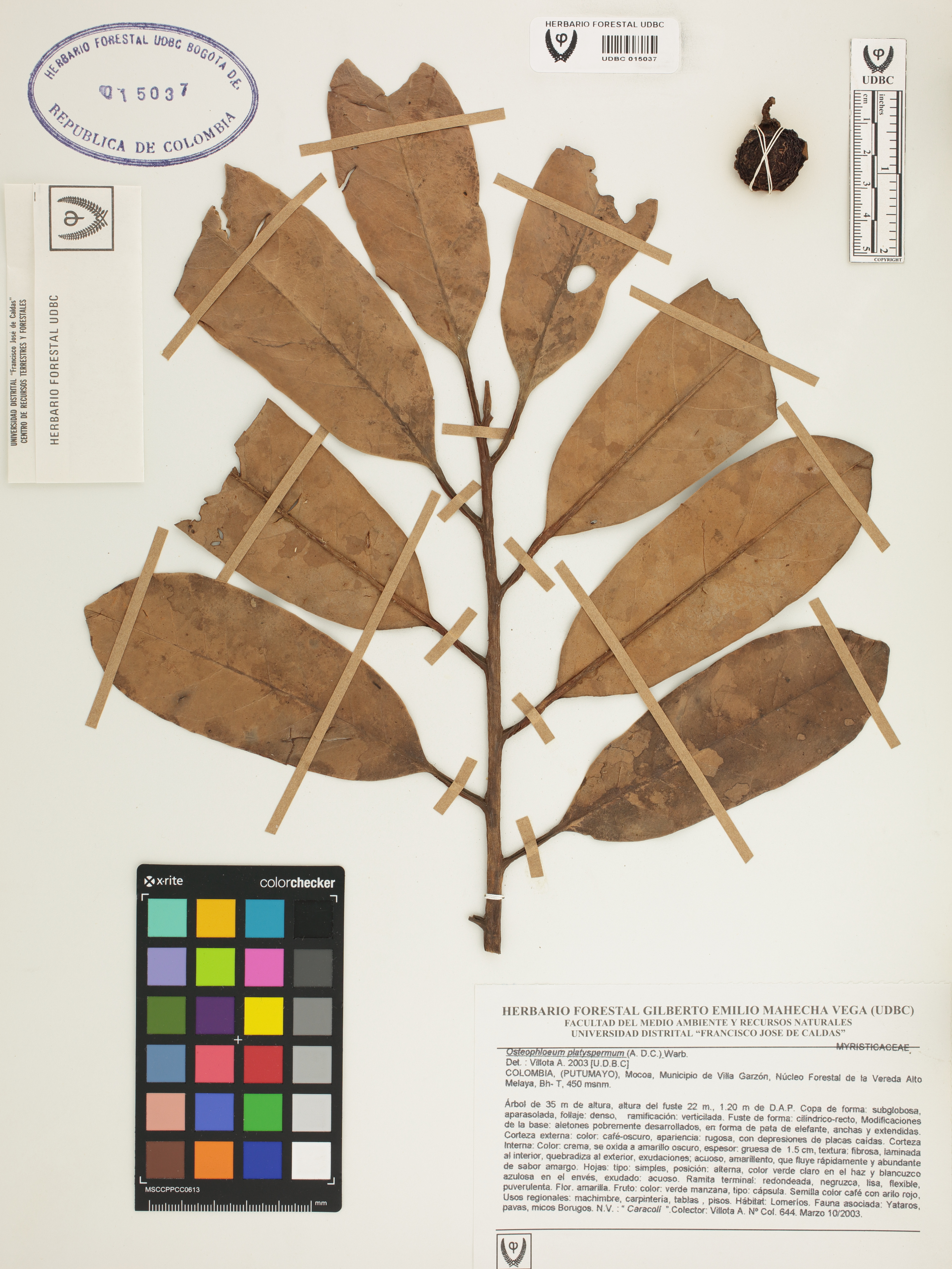 Fotografía del ejemplar Villota, A. 644, determinado como Osteophloeum platyspermum en el año 2003