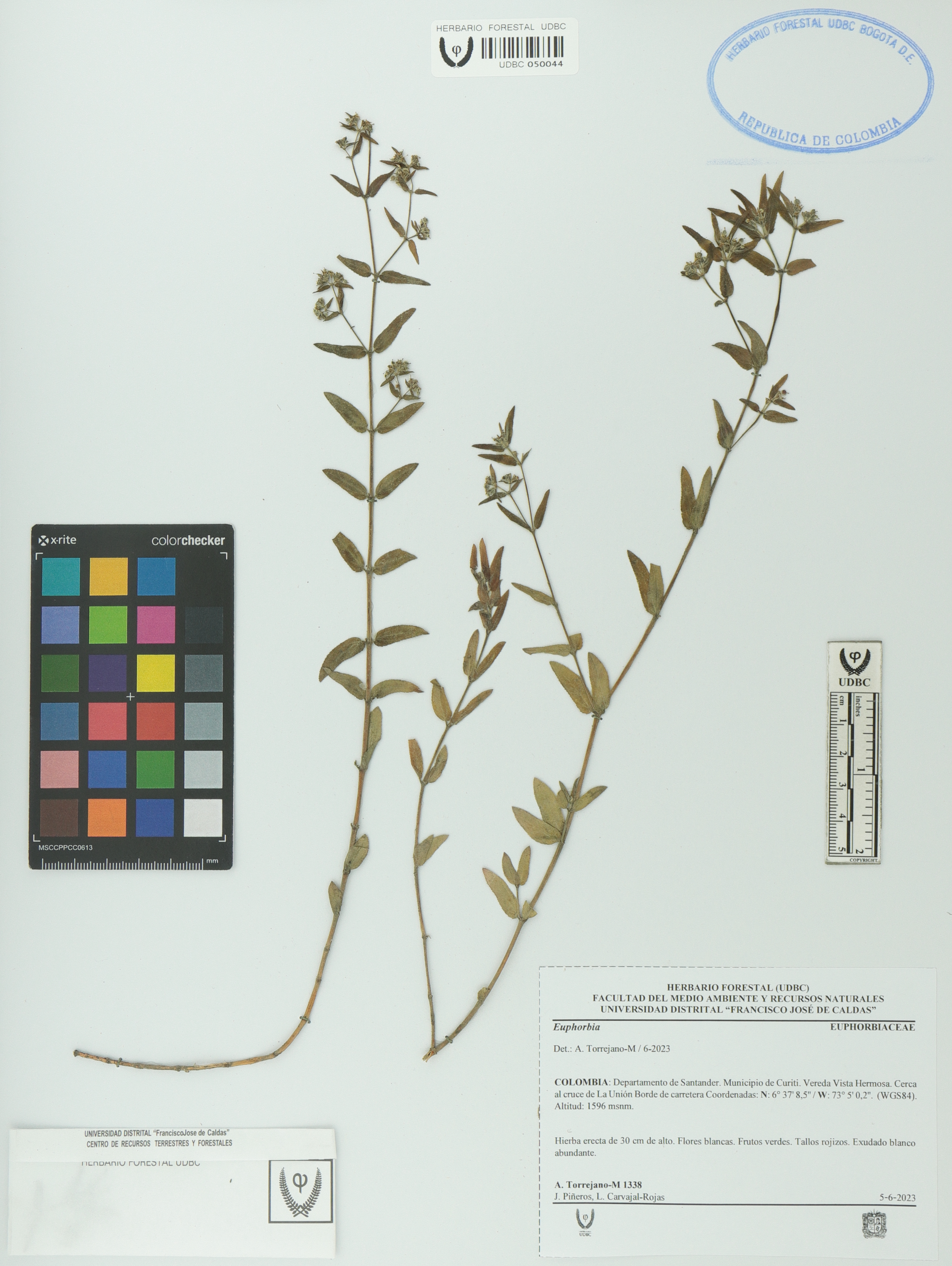 Fotografía del ejemplar Torrejano-M., A. 1338, determinado como Euphorbia sp. en el año 2023