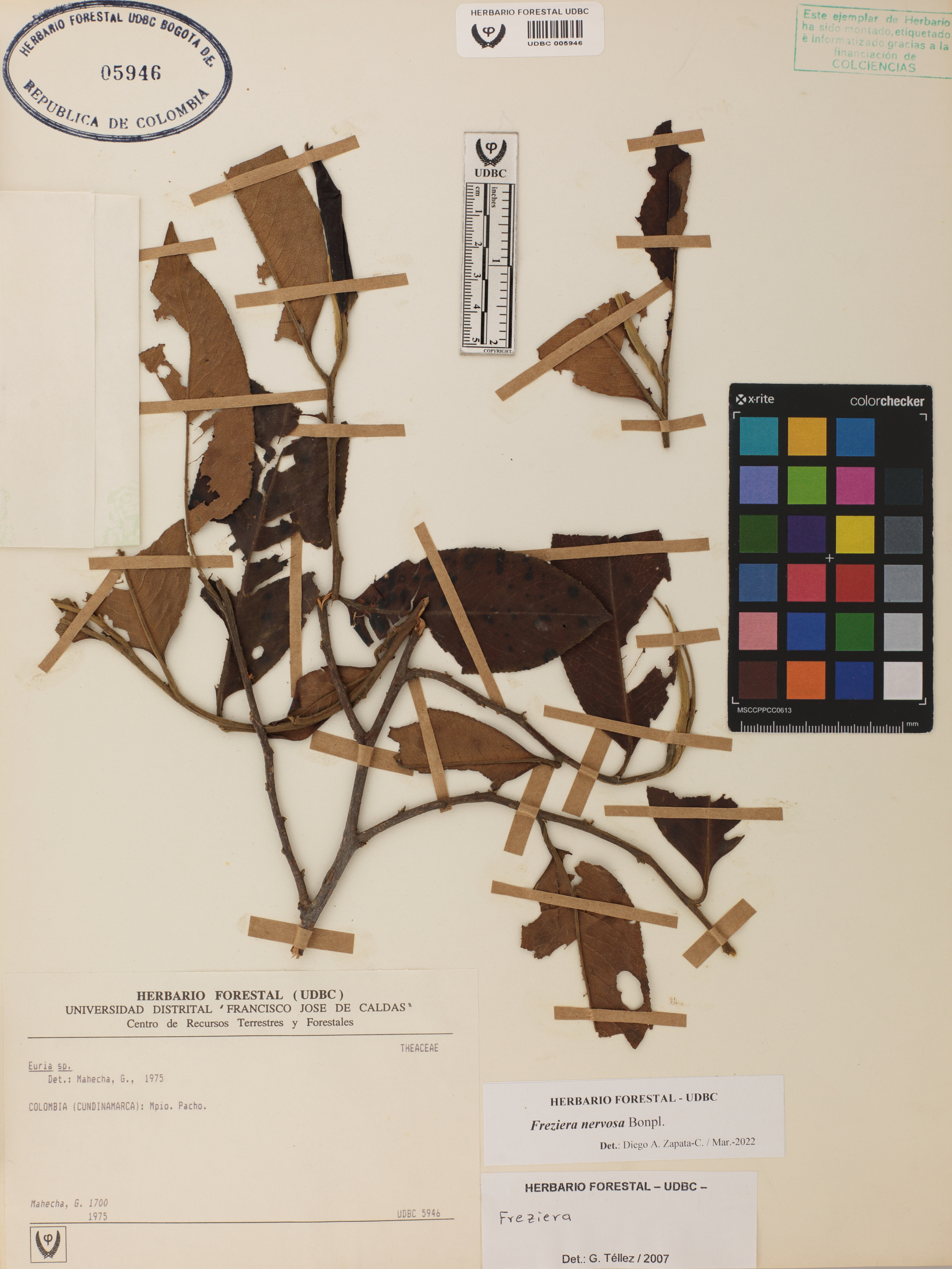 Fotografía del ejemplar Mahecha, G. 1700, determinado como Freziera nervosa en el año 2022