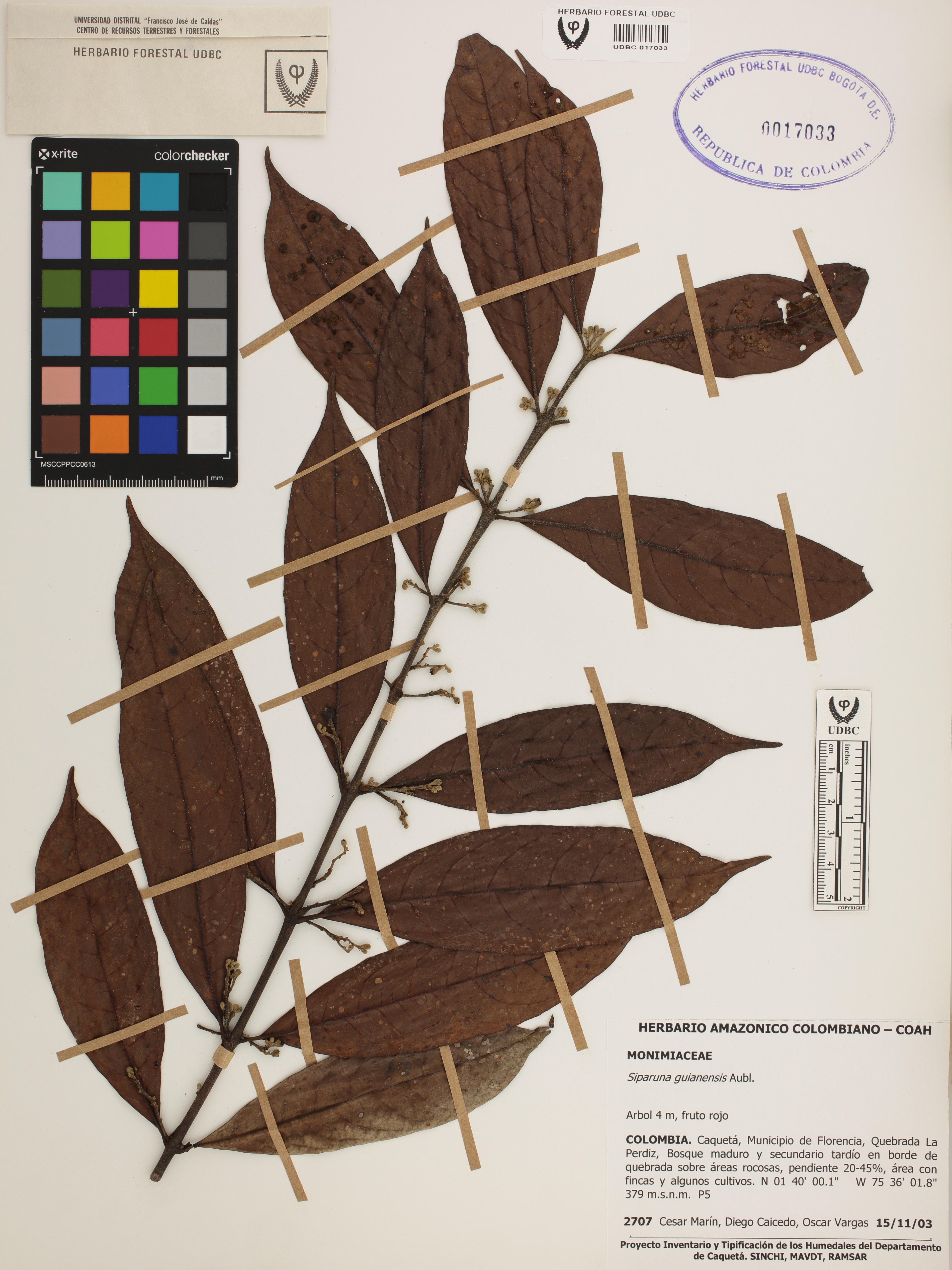 | dc.description | Fotografía del ejemplar Marín, C. 2707, determinado como Siparuna guianensis | |