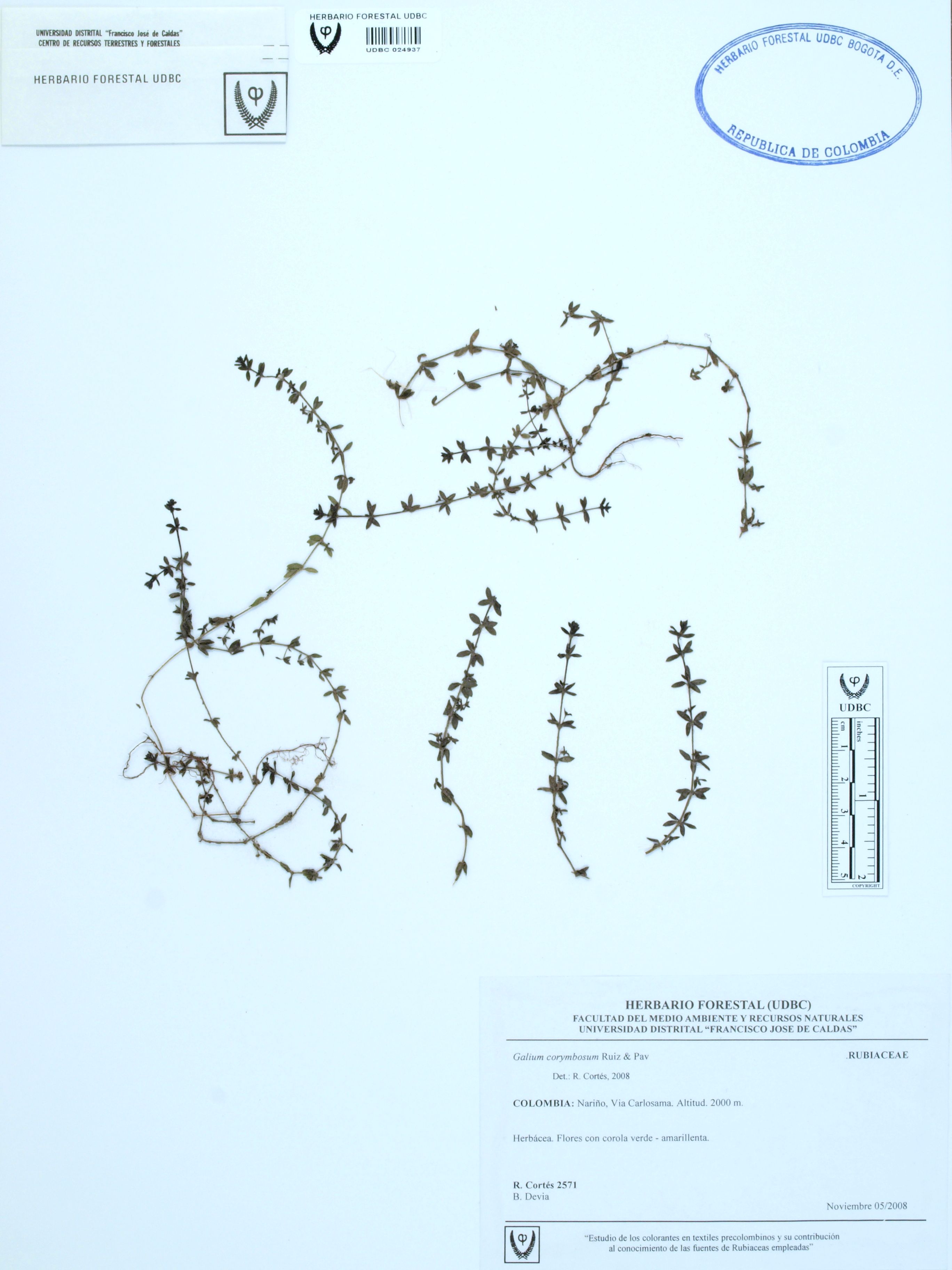 Fotografía del ejemplar Cortés-B., R. 2571, determinado como Galium corymbosum en el año 2008