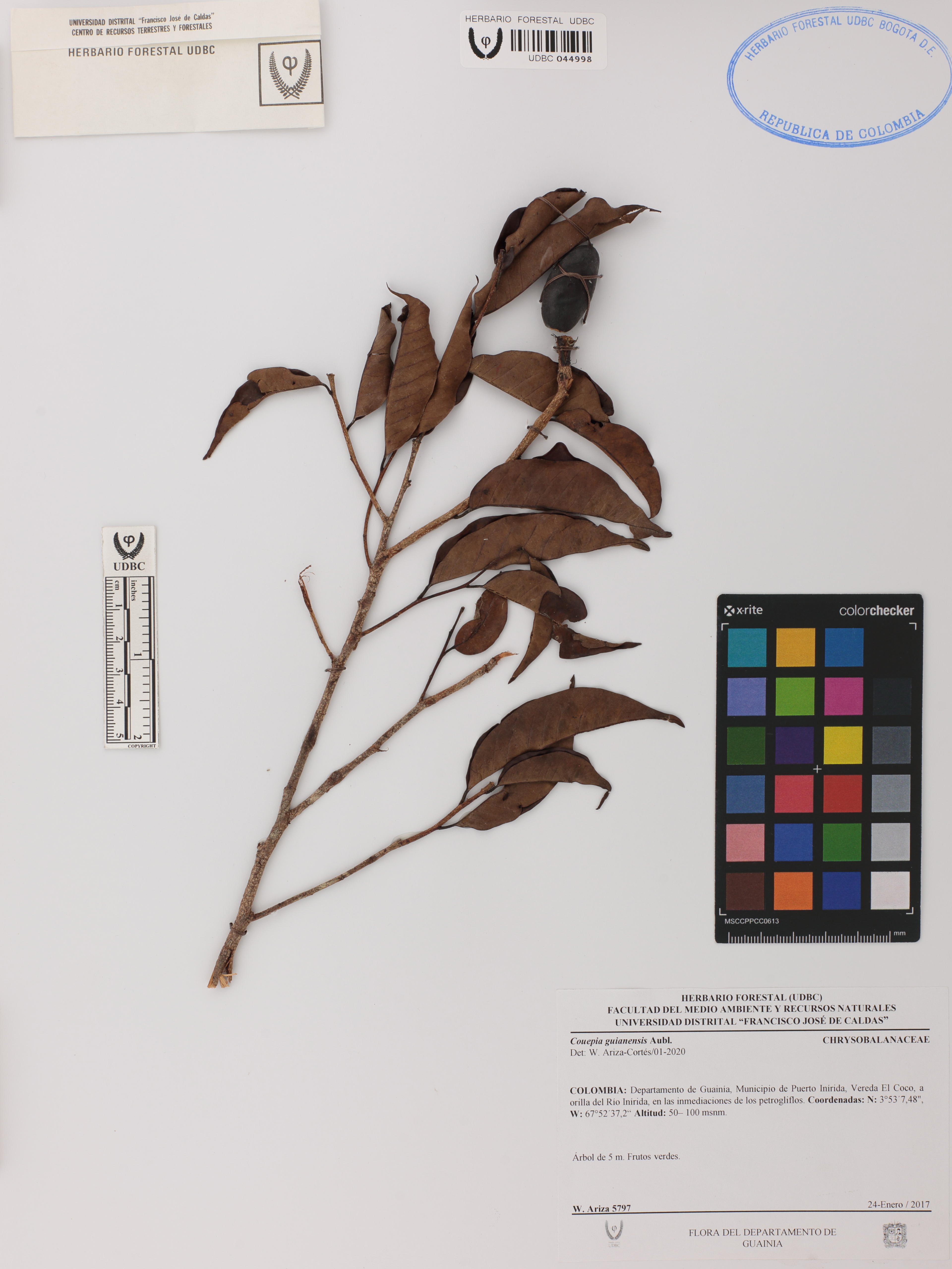 Fotografía del ejemplar Ariza-Cortés, W. 5797, determinado como Couepia guianensis en el año 2020