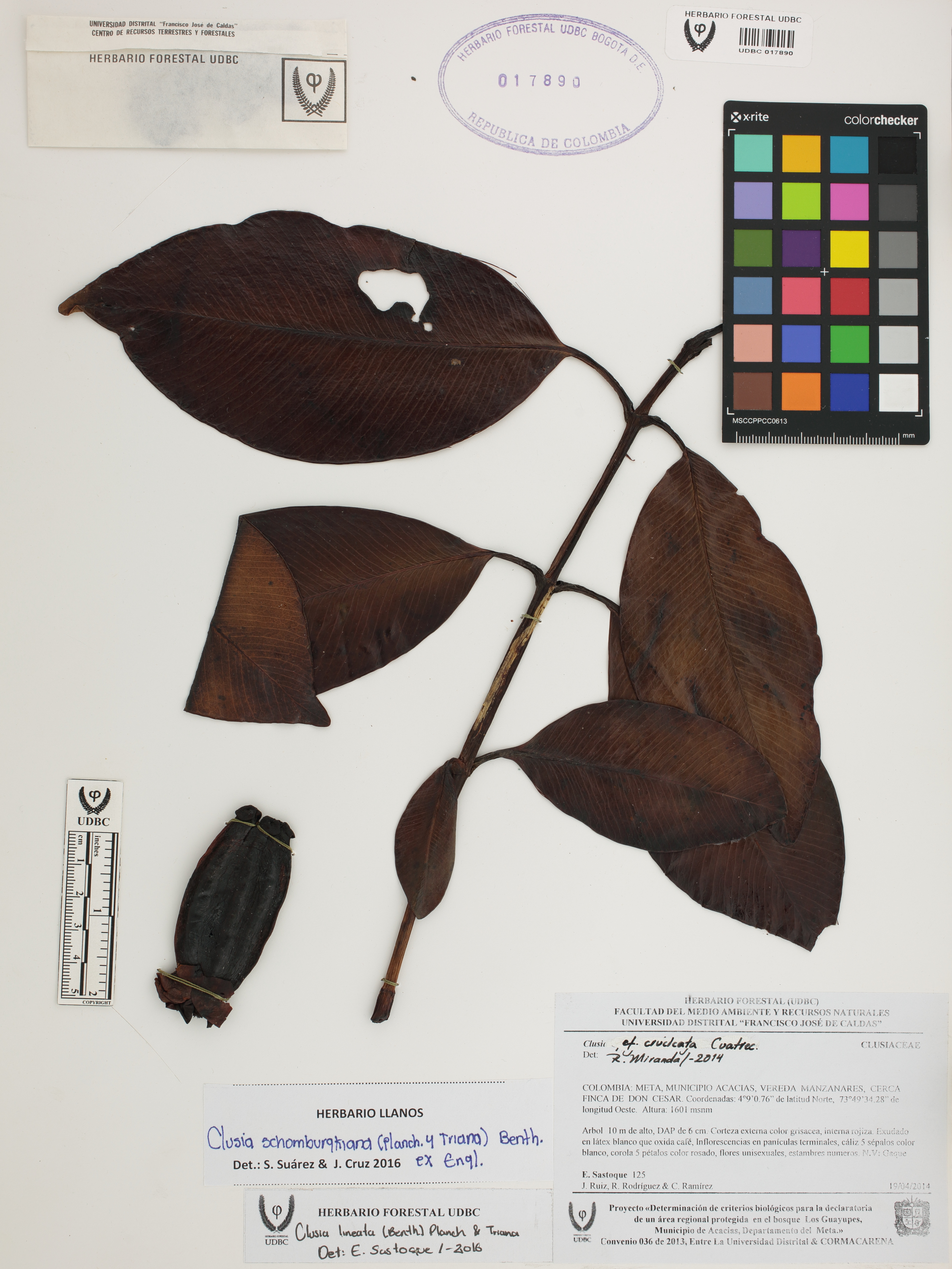 Fotografía del ejemplar Sastoque, E. 125, determinado como Clusia schomburgkiana en el año 2016