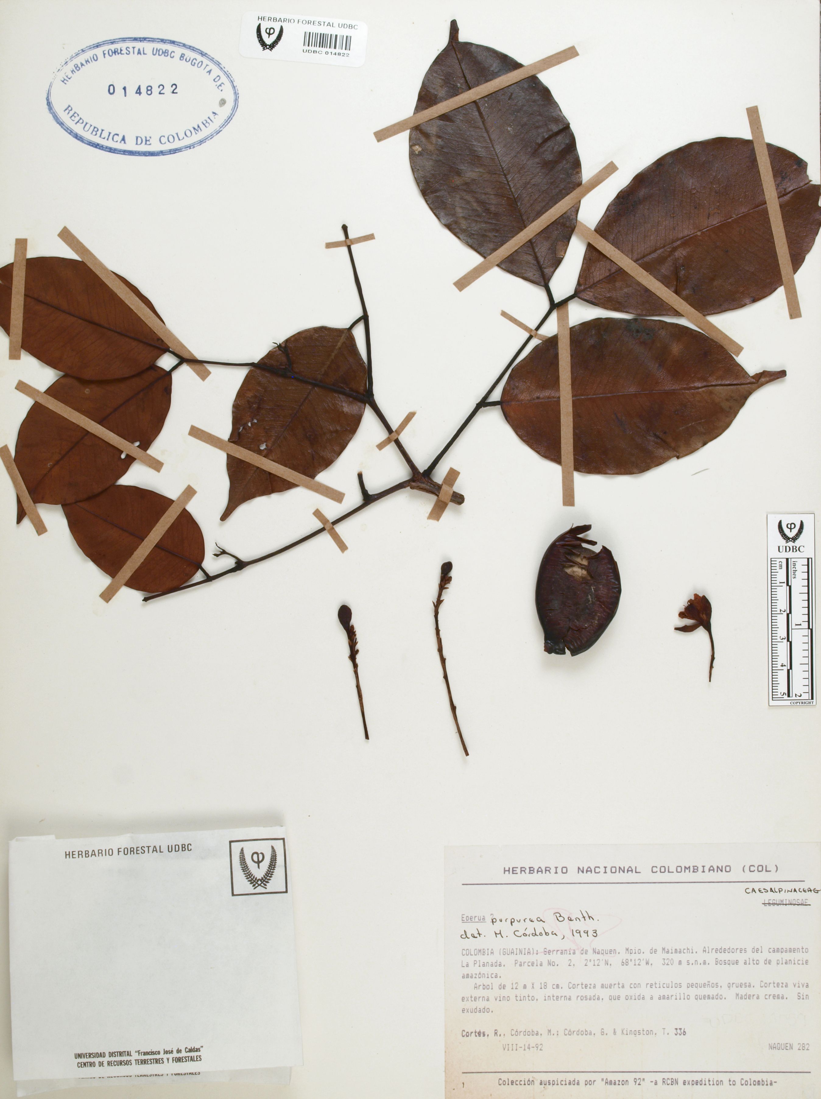Fotografía del ejemplar Cortés, R. 336, determinado como Eperua purpurea en el año 1993