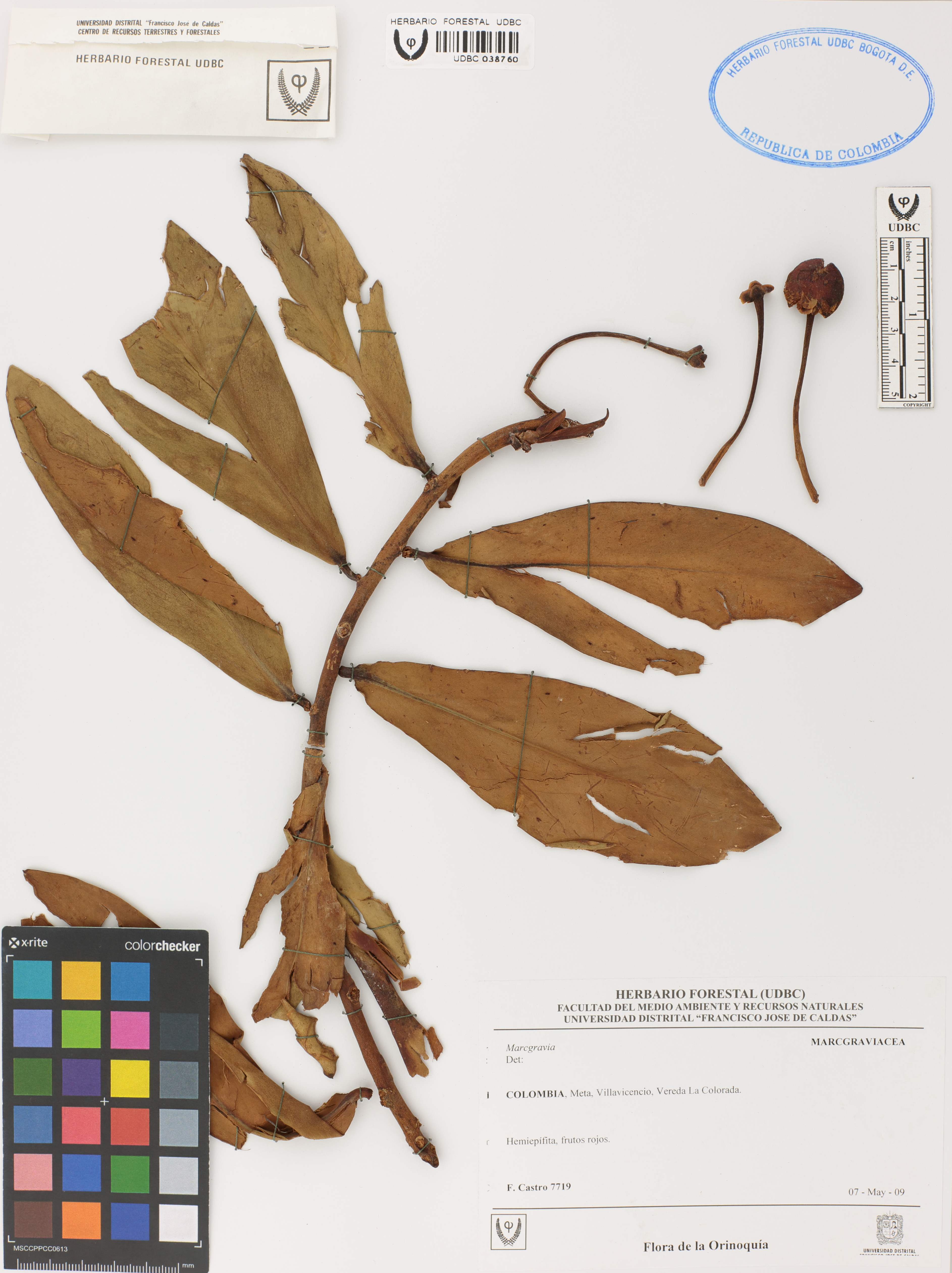 Fotografía del ejemplar Castro, F. 7719, determinado como Marcgravia sp.
