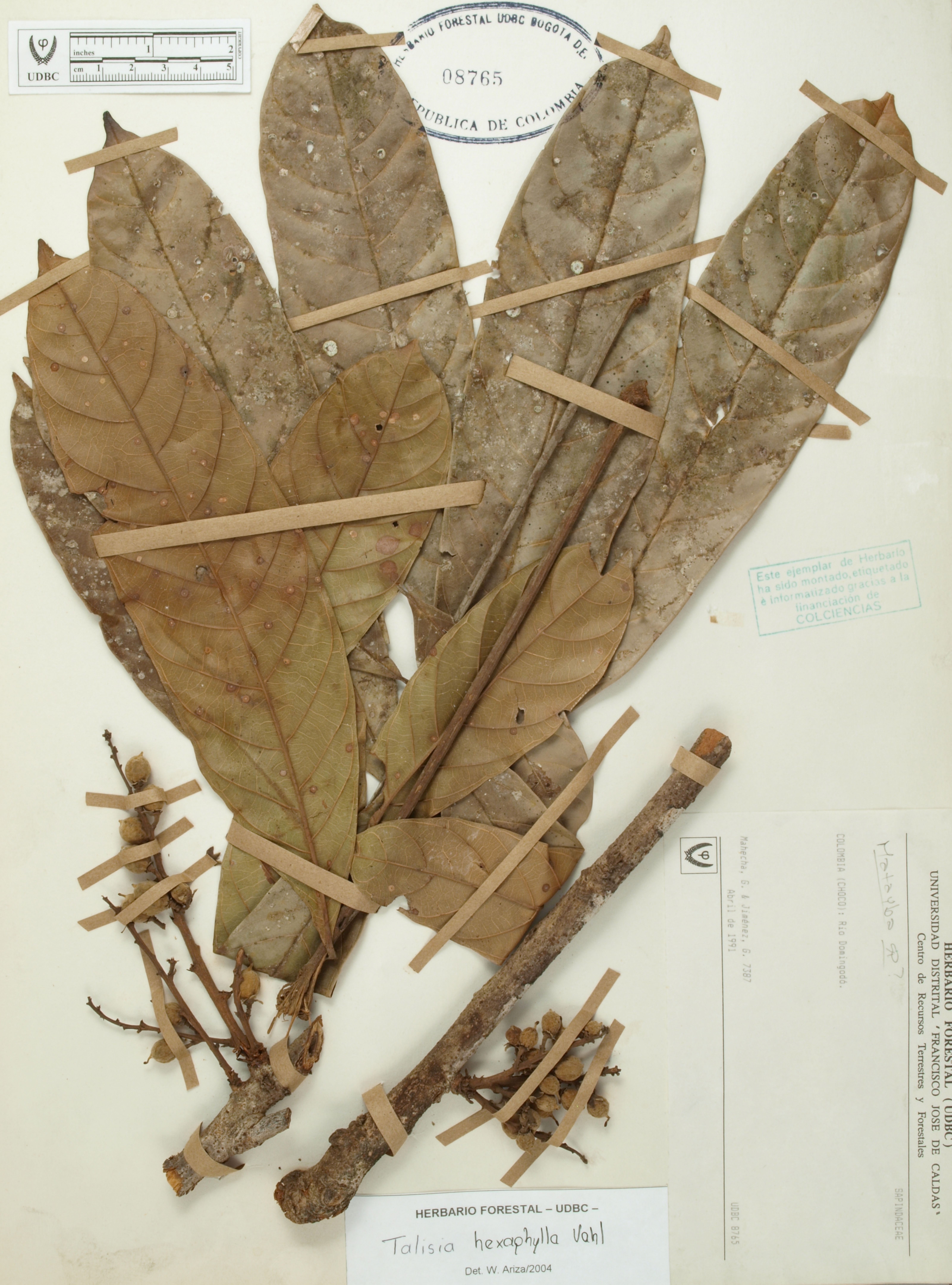 Fotografía del ejemplar Mahecha, G. 7387, determinado como Talisia hexaphylla en el año 2004