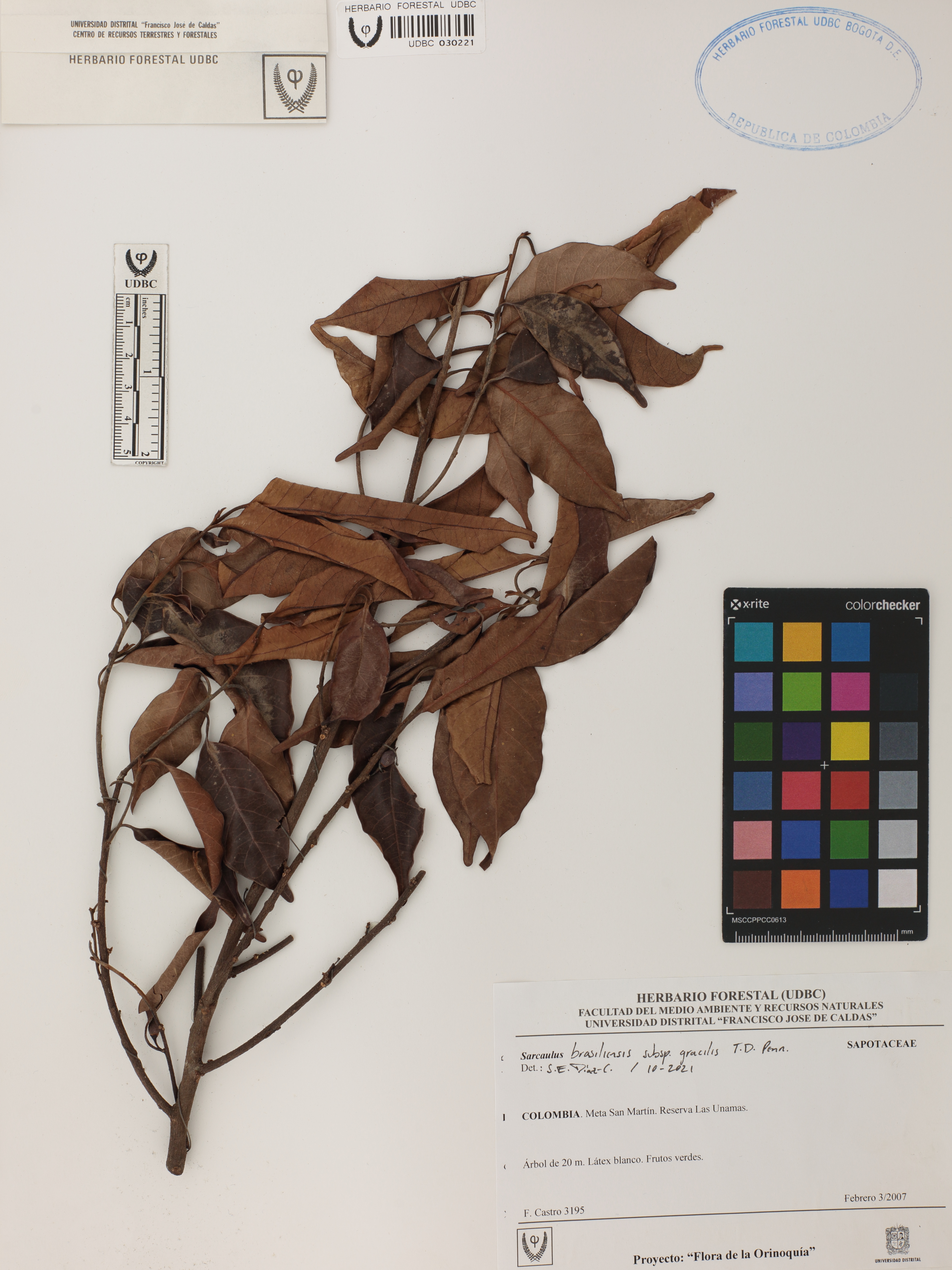 Fotografía del ejemplar Castro, F. 3195, determinado como Sarcaulus brasiliensis subsp. gracilis en el año 2021