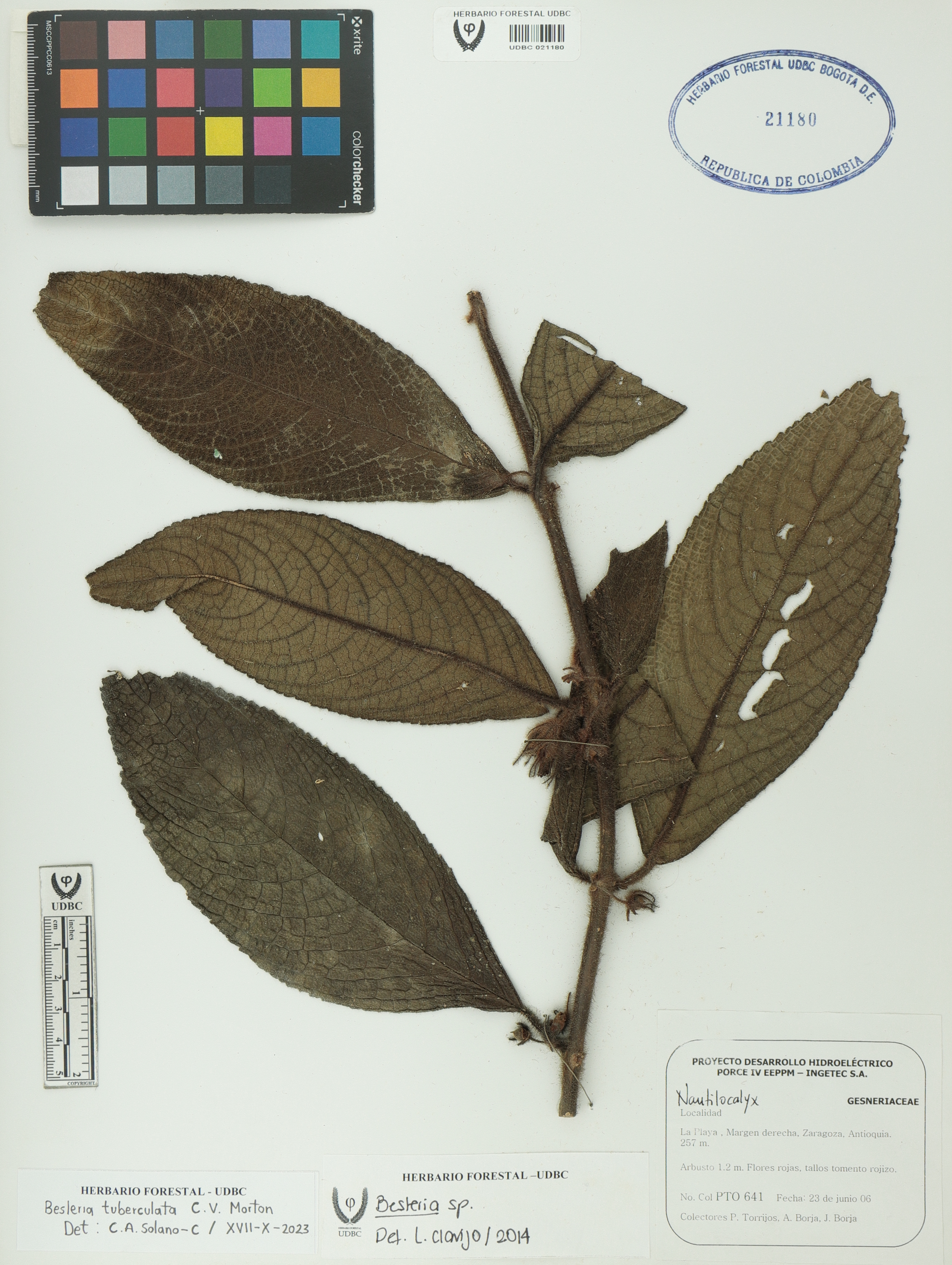 Fotografía del ejemplar Torrijos, P. 641, determinado como Besleria tuberculata en el año 2023