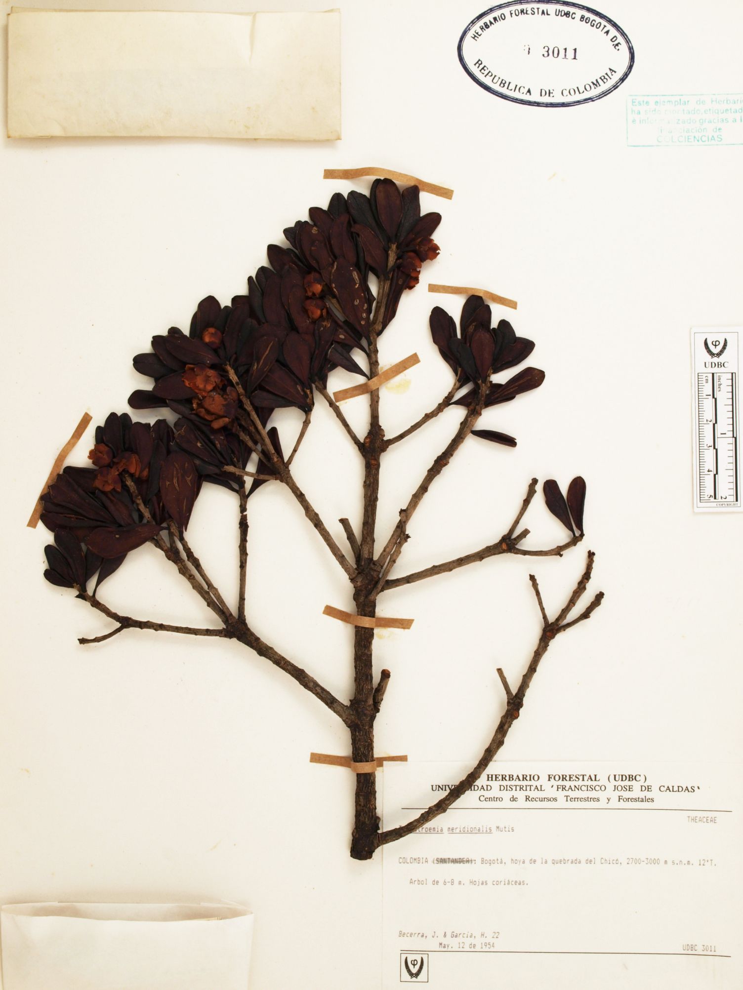 Fotografía del ejemplar Becerra, J. 22, determinado como Ternstroemia meridionalis