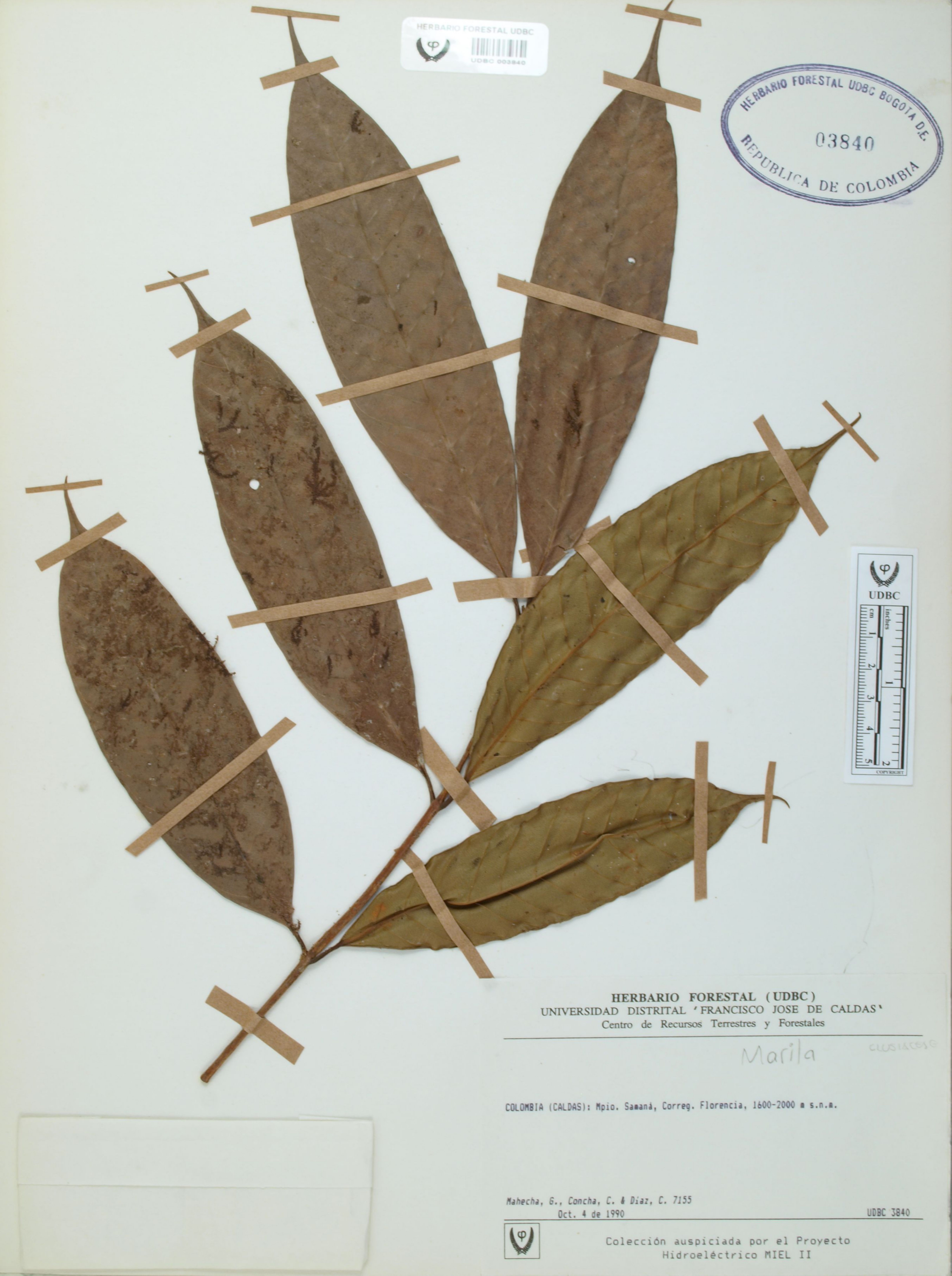 Fotografía del ejemplar Mahecha, G. 7155, determinado como Marila sp.