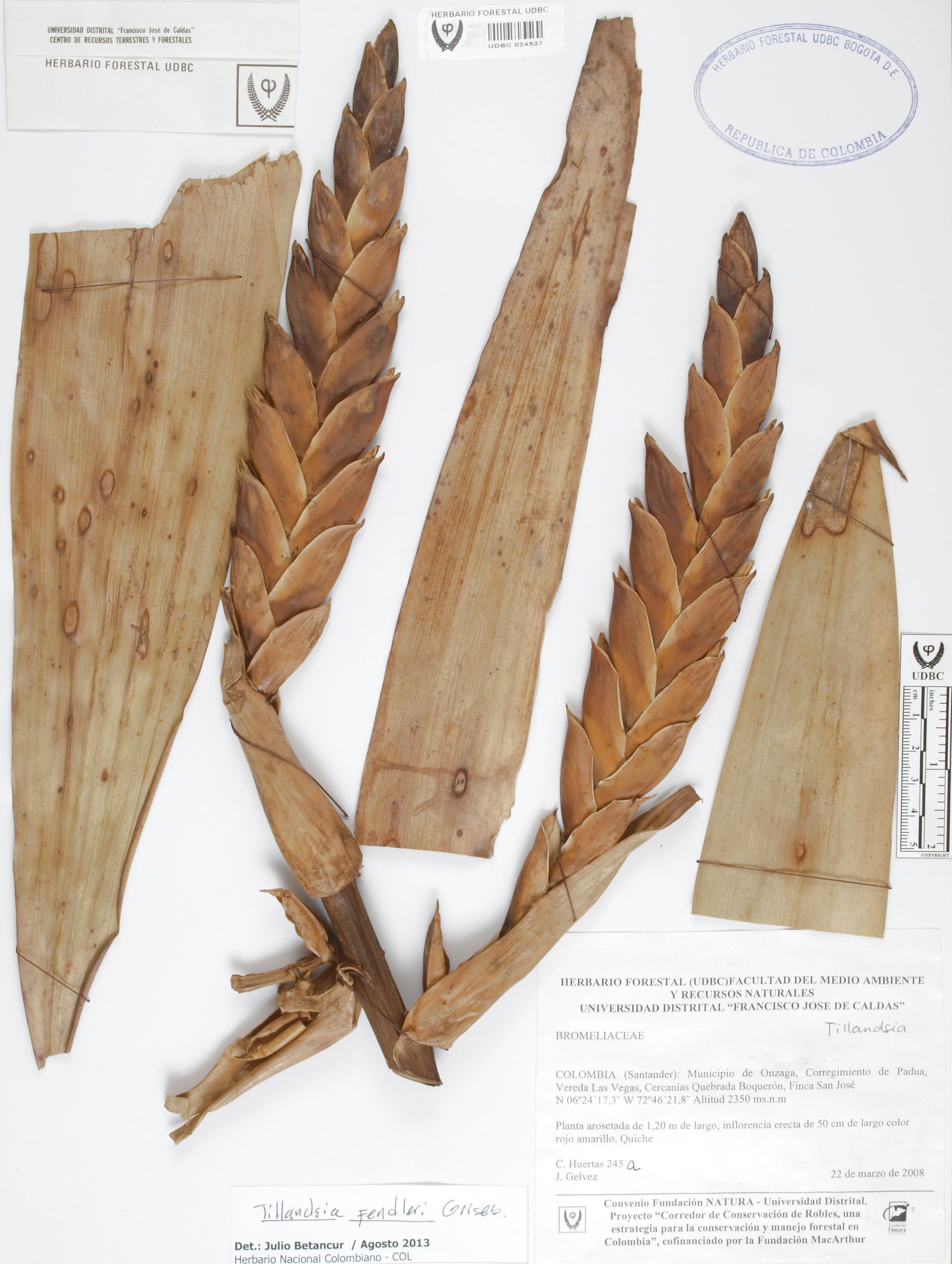 Fotografía del ejemplar Huertas, C. 245, determinado como Tillandsia fendleri en el año 2013