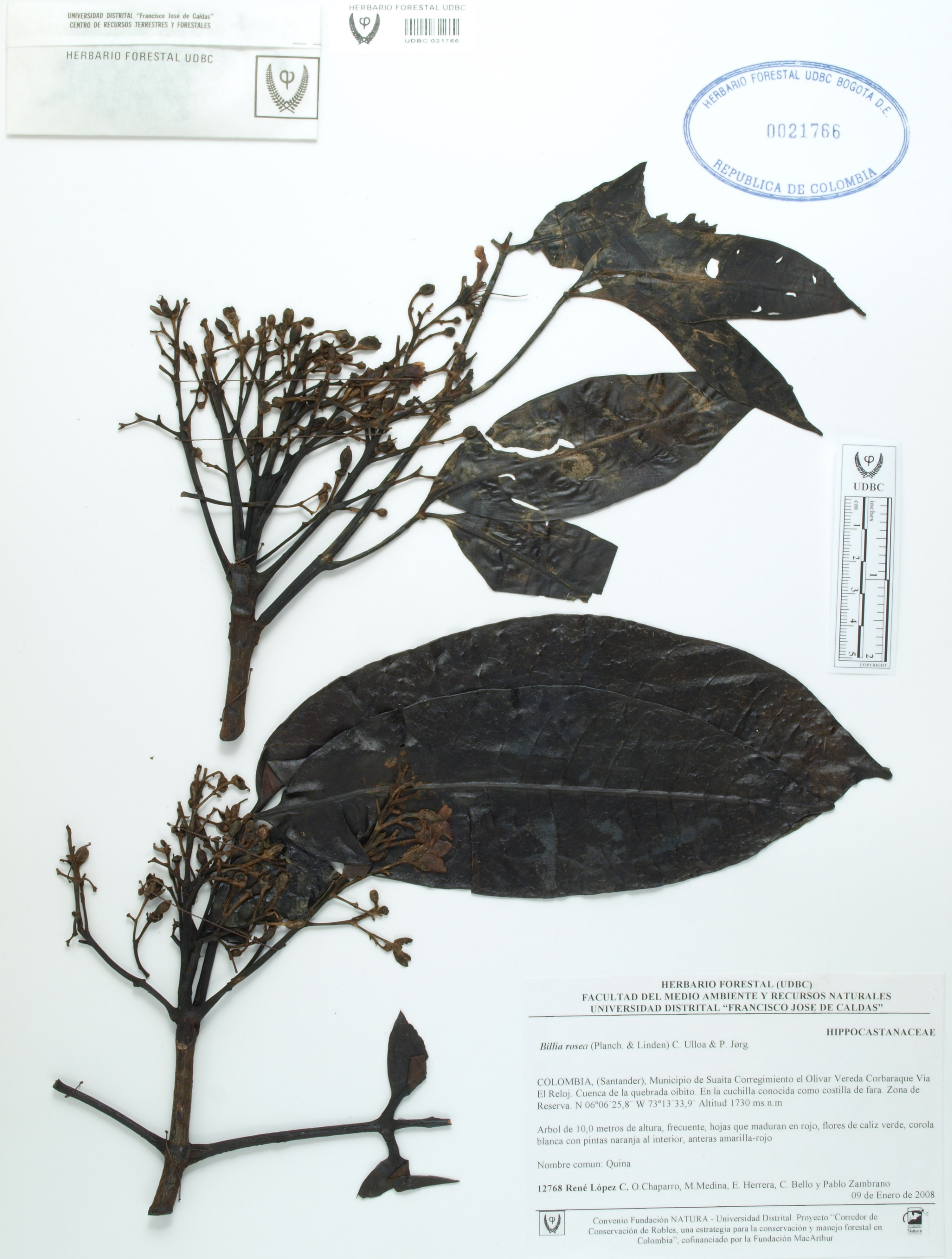 Fotografía del ejemplar López, R. 12768, determinado como Billia rosea