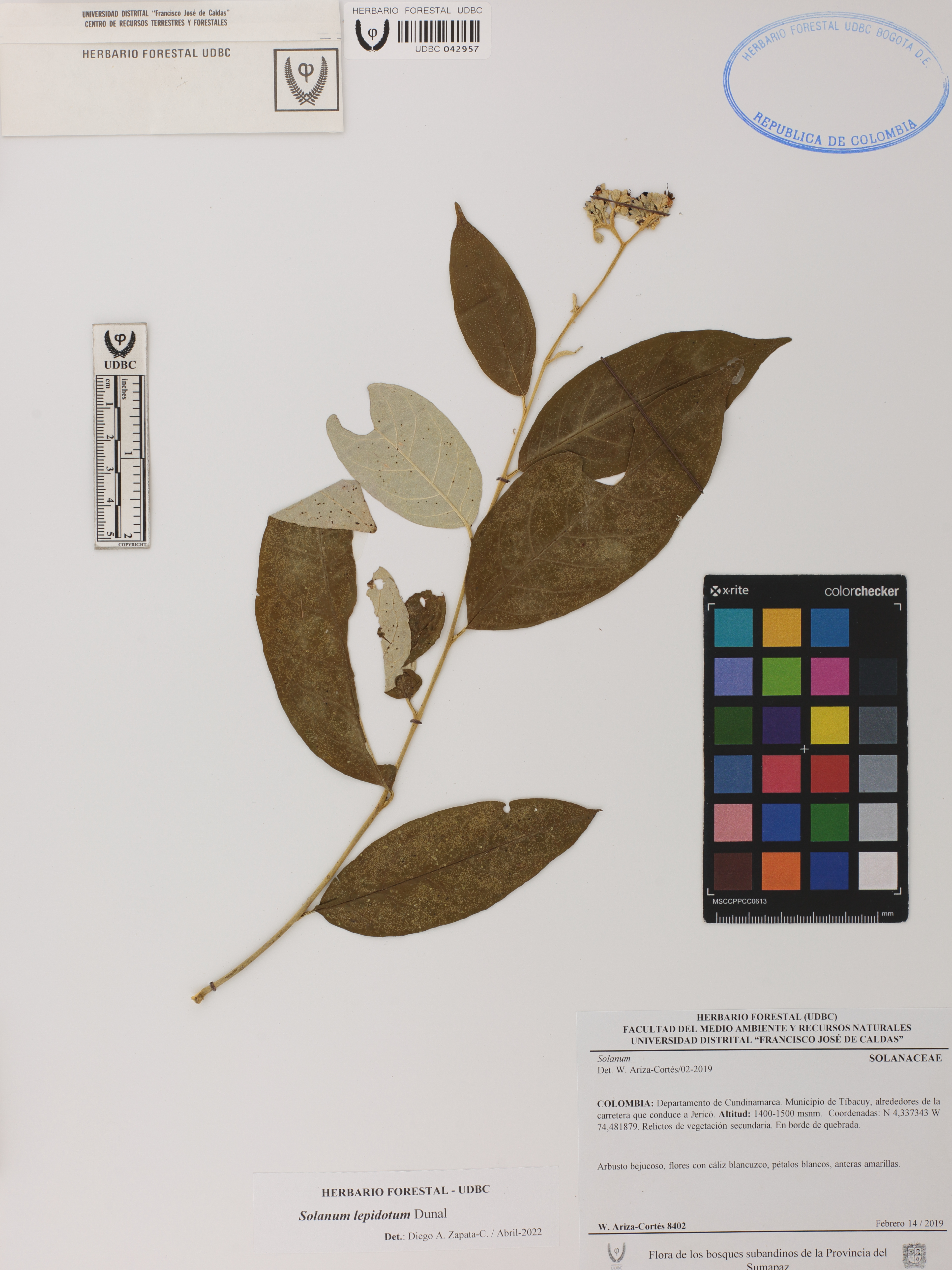 Fotografía del ejemplar Ariza-Cortés, W. 8402, determinado como Solanum lepidotum en el año 2022