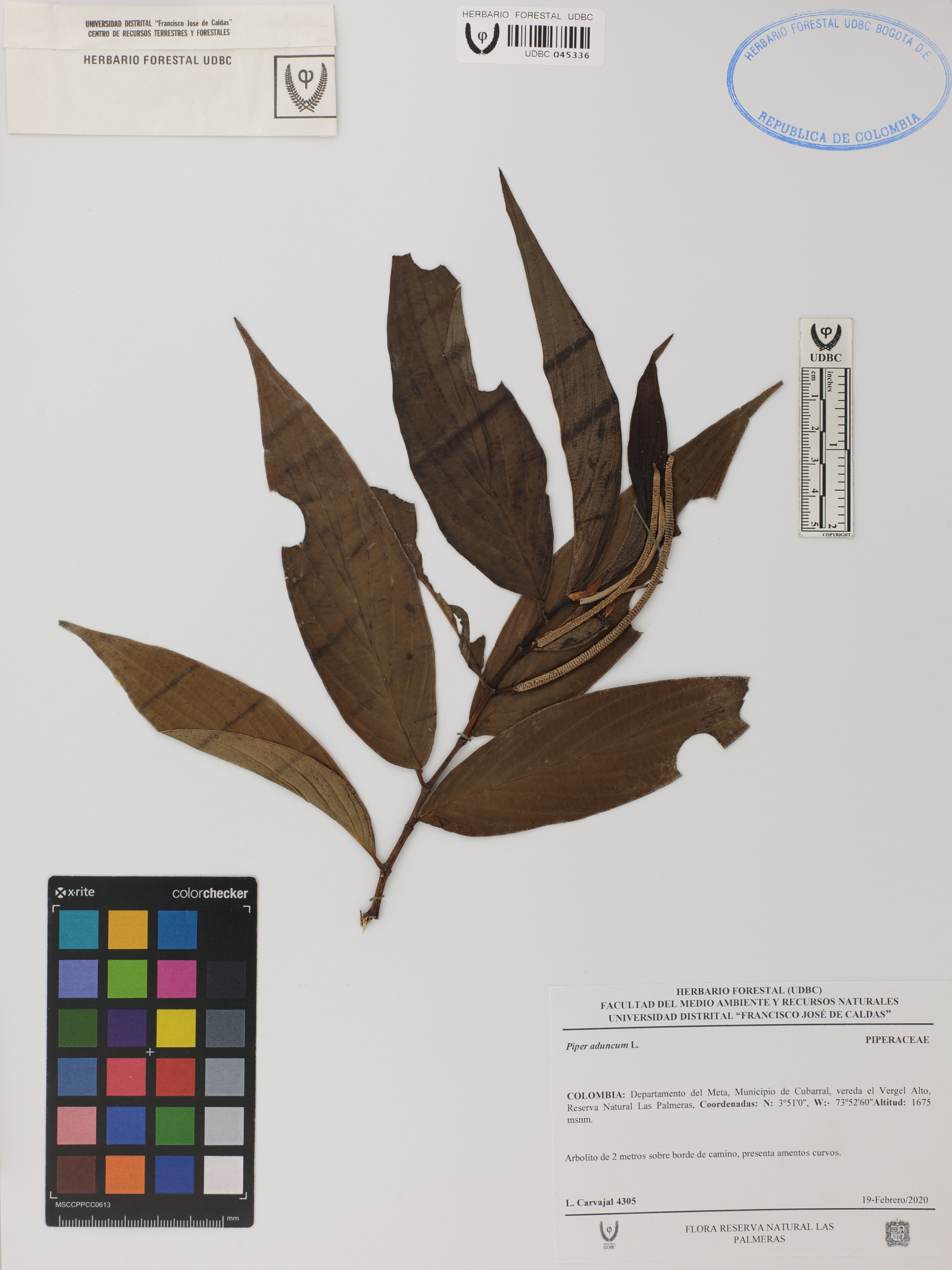 | dc.description | Fotografía del ejemplar Carvajal, L. 4305, determinado como Piper aduncum en el año 2020 | |