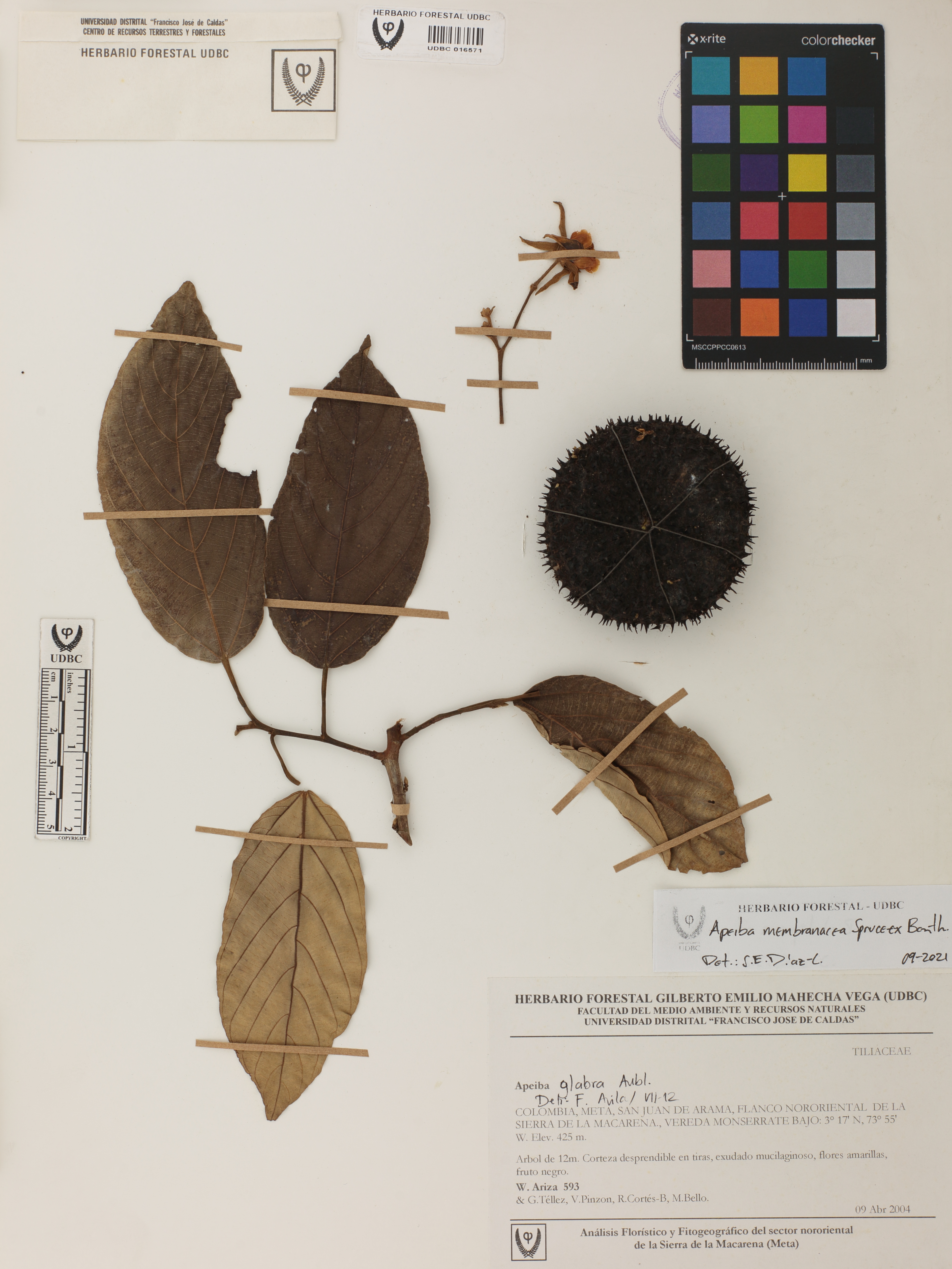 | dc.description | Fotografía del ejemplar Ariza, W. 593, determinado como Apeiba membranacea en el año 2021 | |