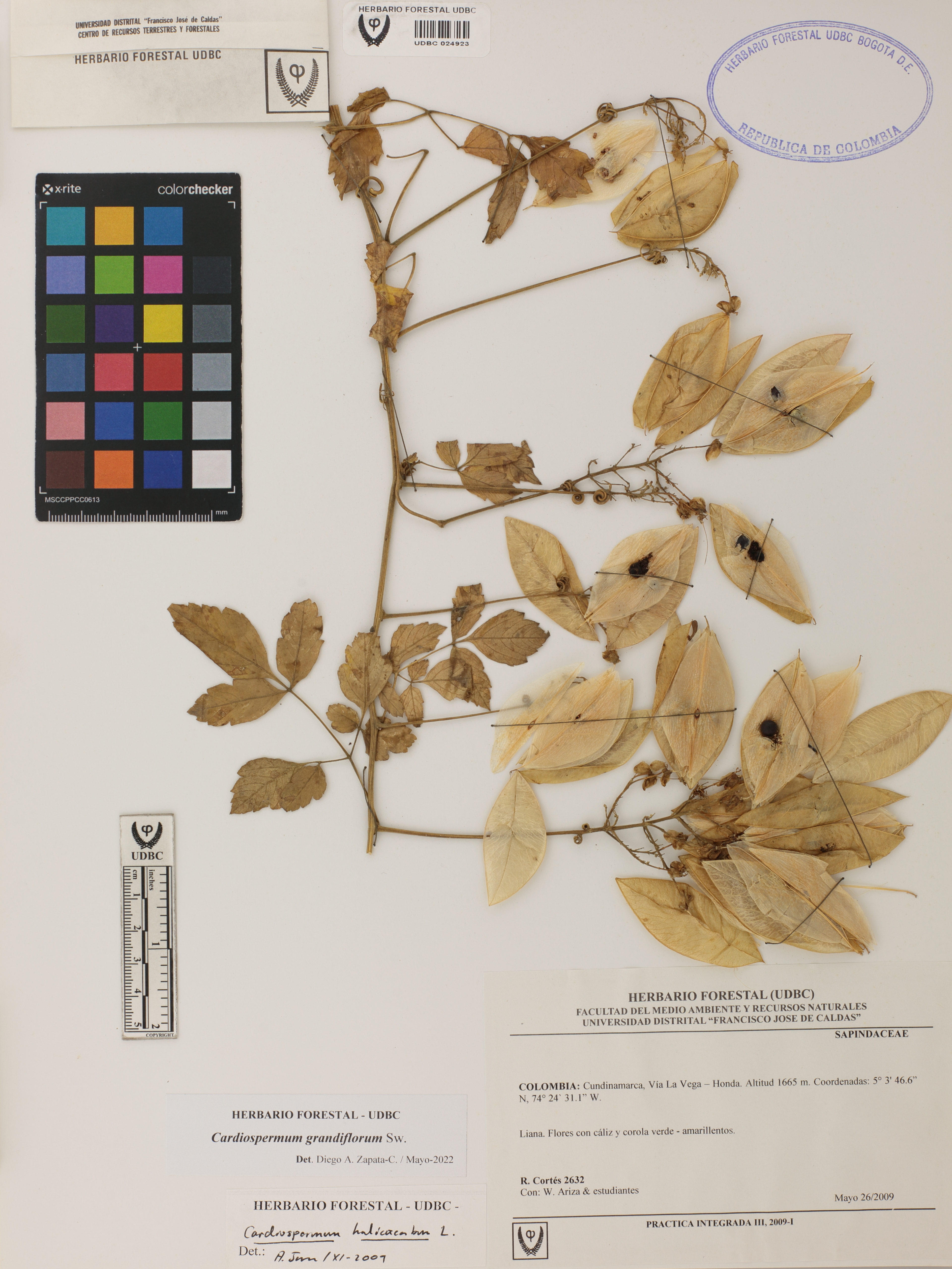 Fotografía del ejemplar Cortés-B., R. 2632, determinado como Cardiospermum grandiflorum en el año 2022