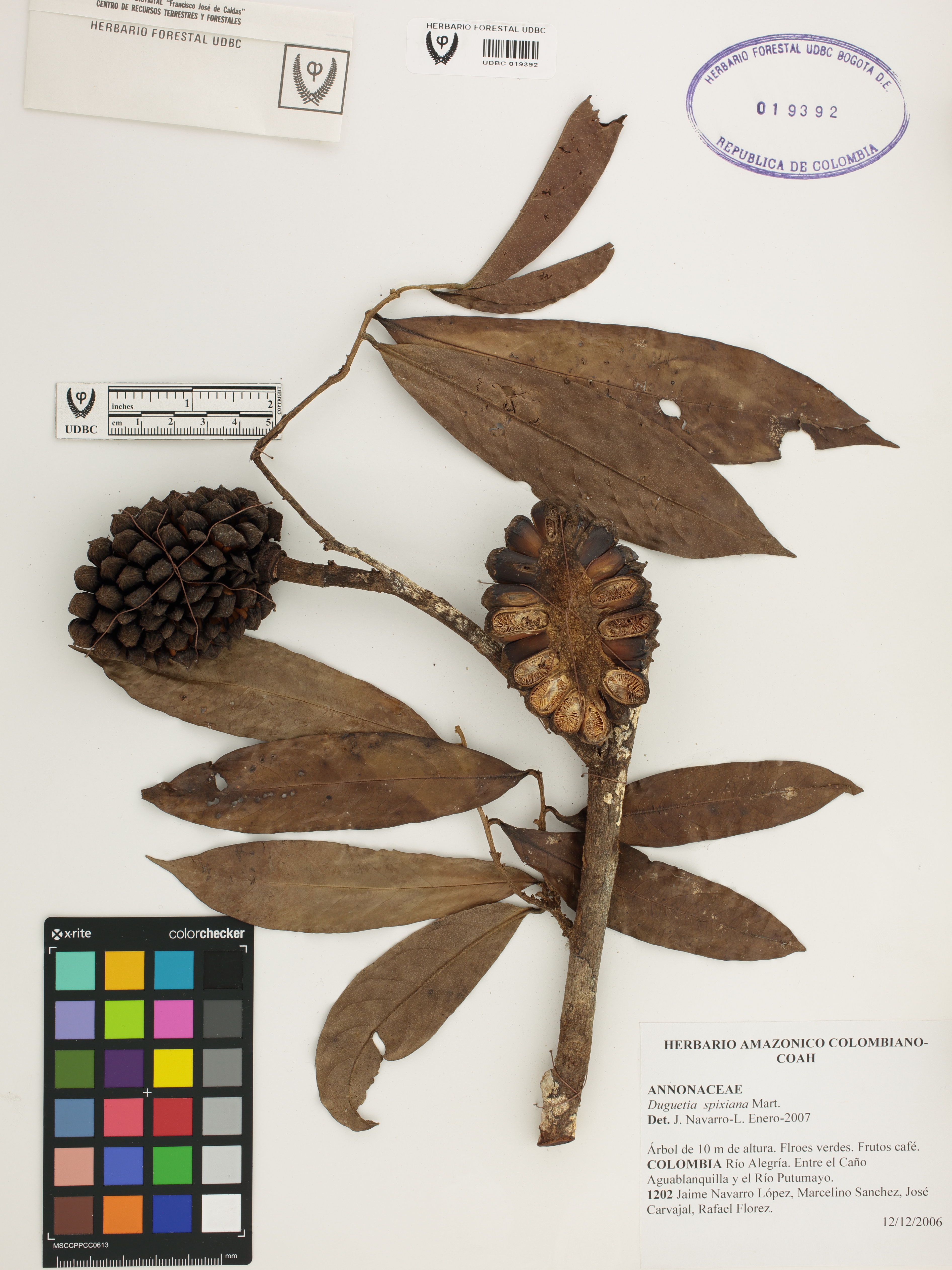 Fotografía del ejemplar Navarro, J. 1202, determinado como Duguetia spixiana en el año 2007