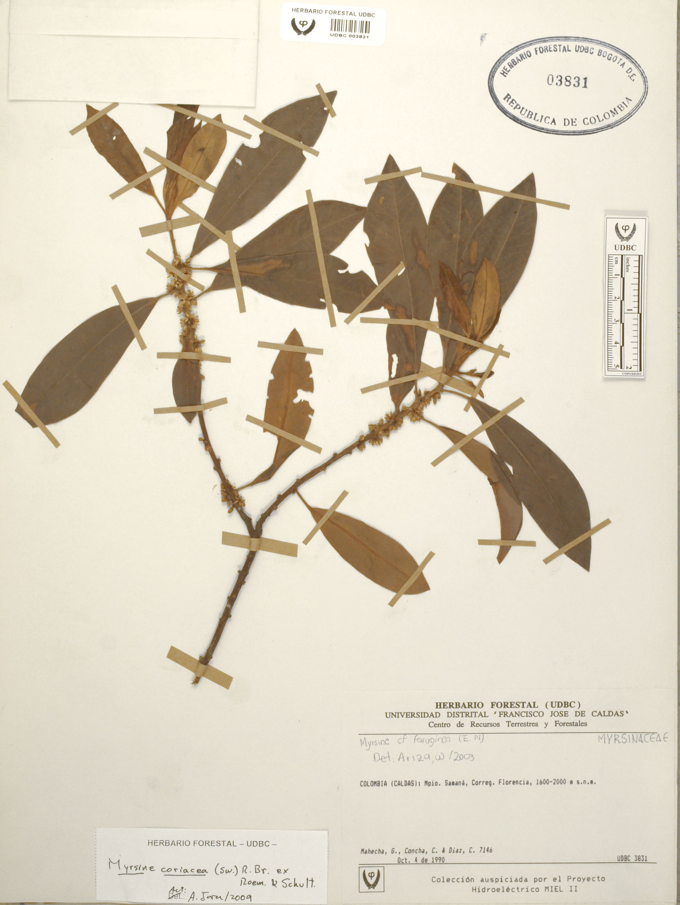 Fotografía del ejemplar Mahecha, G. 7146, determinado como Myrsine coriacea en el año 2009