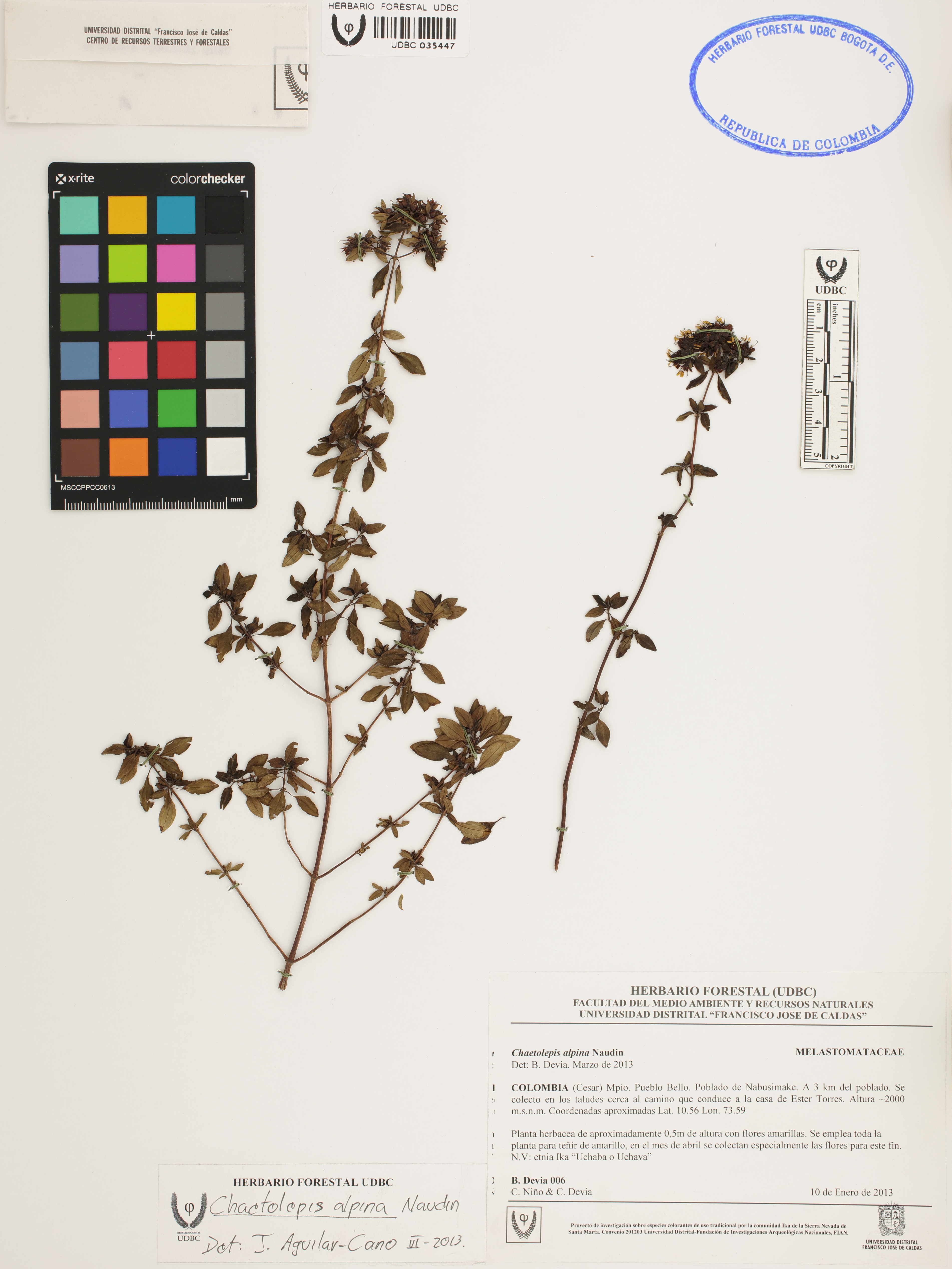 | dc.description | Fotografía del ejemplar Devia, B. 6, determinado como Chaetolepis alpina en el año 2013 | |