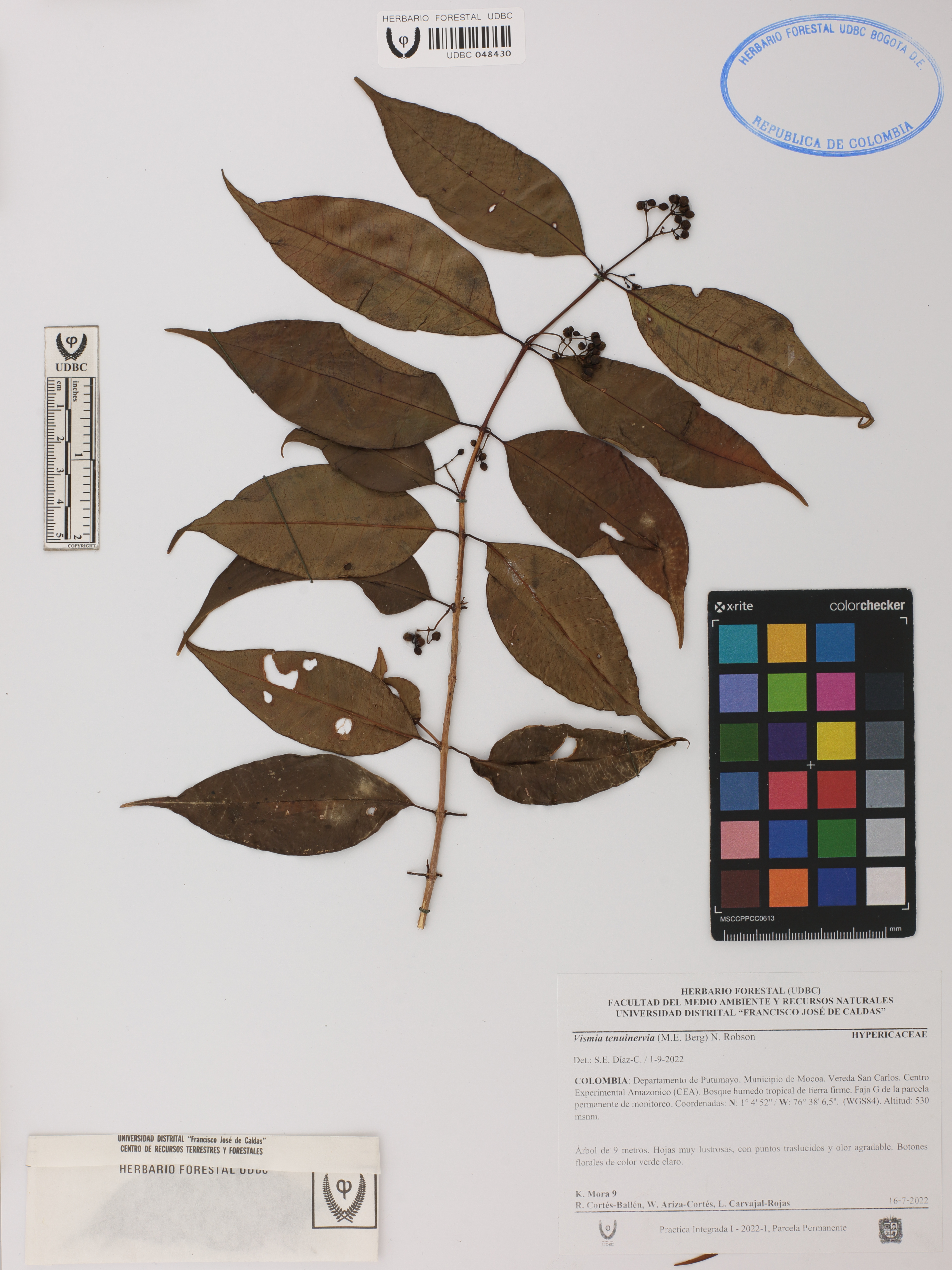 Fotografía del ejemplar Mora, K. 9, determinado como Vismia tenuinervia en el año 2022
