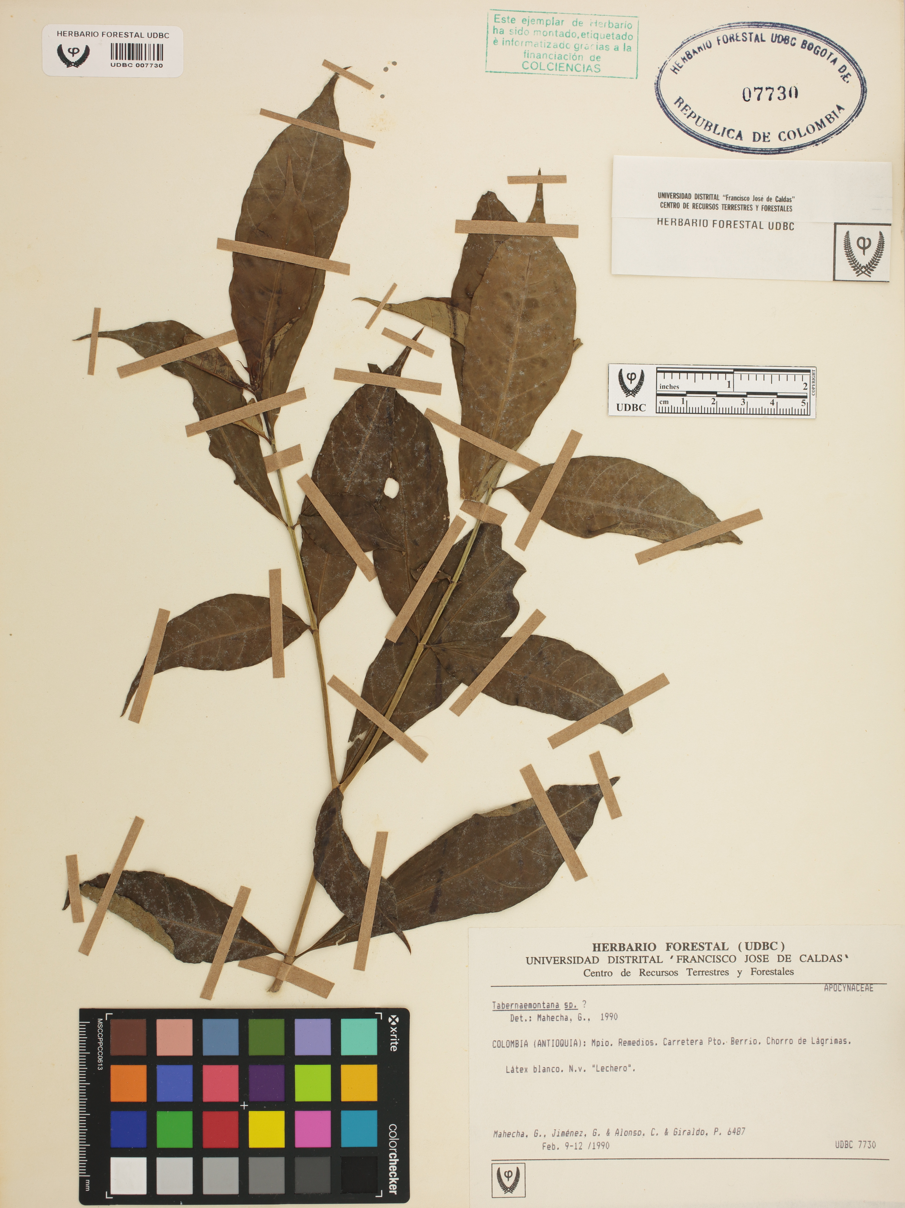 Fotografía del ejemplar Mahecha, G. 6487, determinado como Tabernaemontana grandiflora en el año 2017