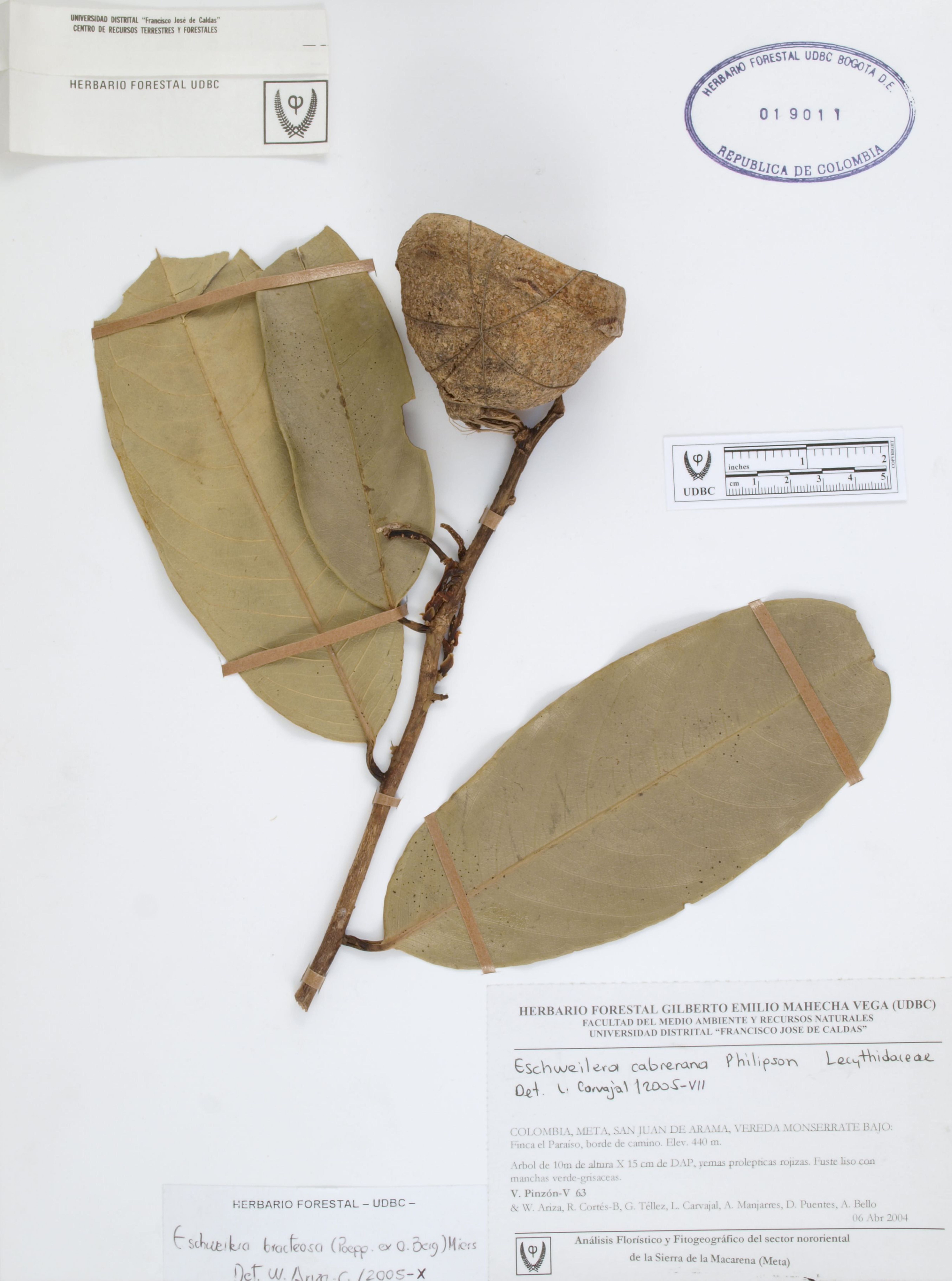 Fotografía del ejemplar Pinzón, V. 63, determinado como Eschweilera bracteosa en el año 2005