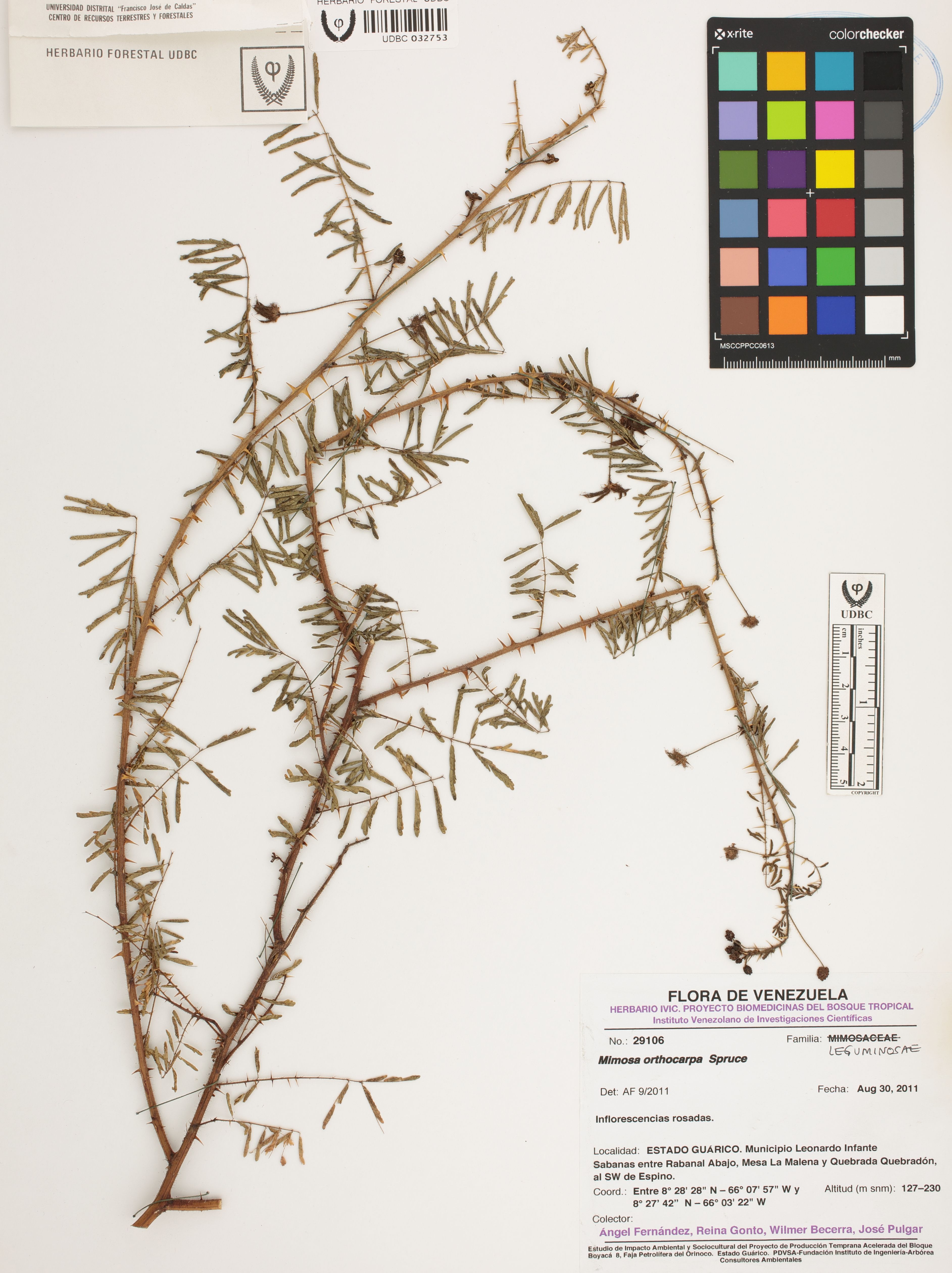 Fotografía del ejemplar Fernández, A. 29106, determinado como Mimosa orthocarpa en el año 2011